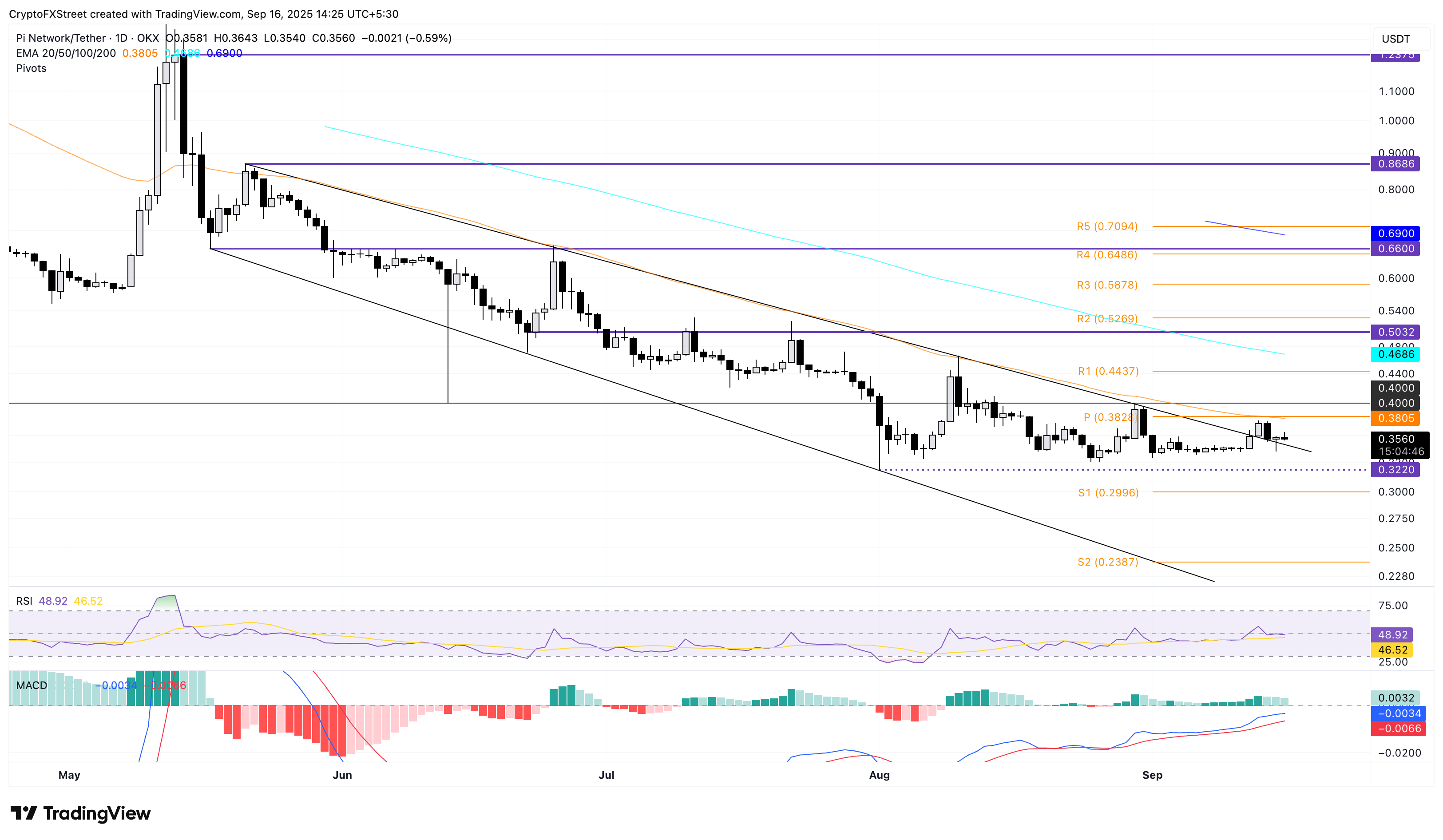 El precio de Pi Network (PI) se mantiene actualmente por encima del nivel de 0.3500$ en el momento de la publicación el martes, luchando por hacer cumplir una ruptura de canal. La perspectiva técnica indica que el token PI se encuentra en una encrucijada crucial, ya que el sentimiento del mercado antes de la reunión del Comité Federal de Mercado Abierto (FOMC) de EE.UU., que decidirá sobre recortes de tasas de interés el miércoles, permanece apagado.