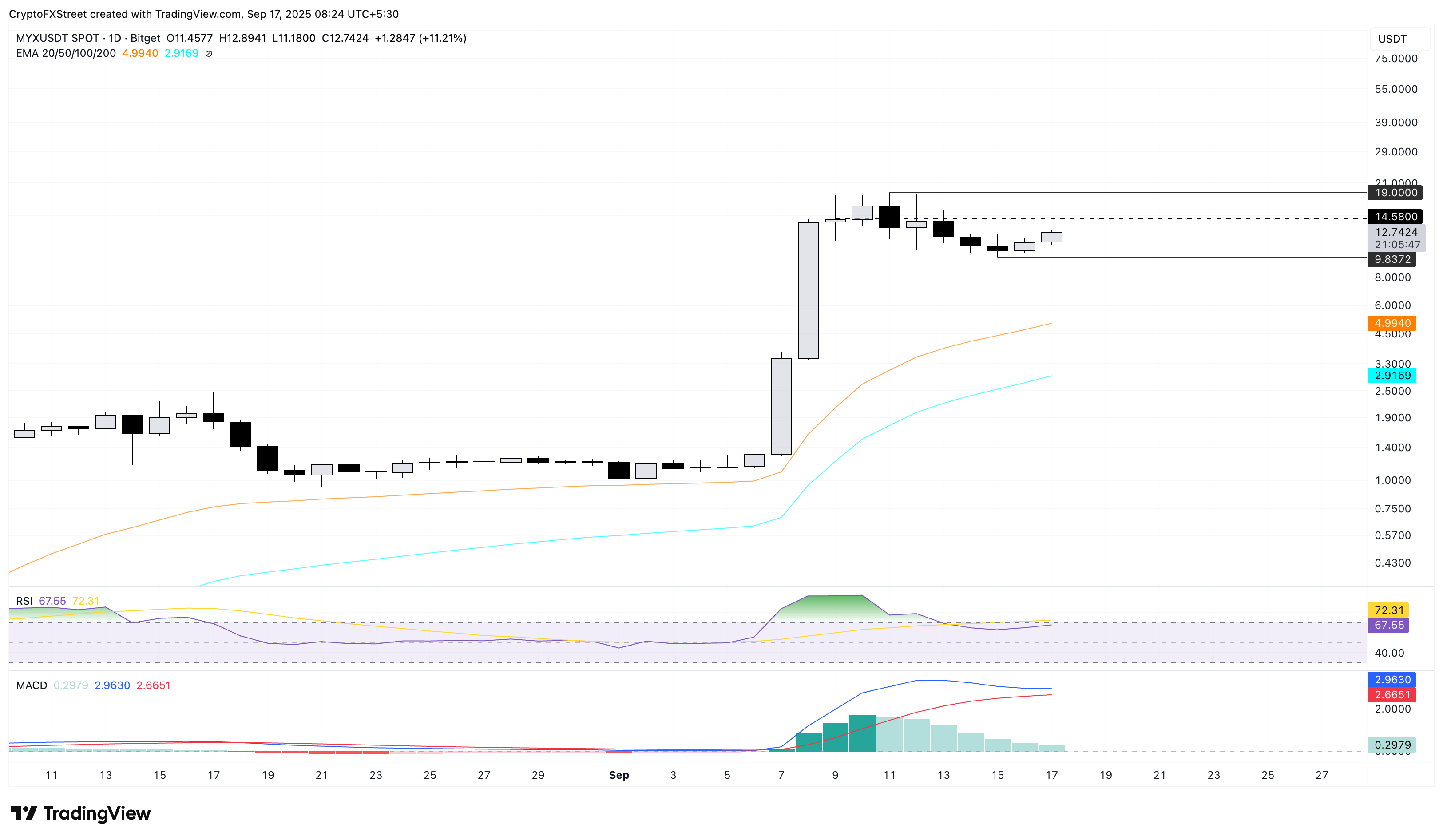 La recuperación de MYX tiene como objetivo el pico de 19.00$ a medida que la presión de compra resurge.