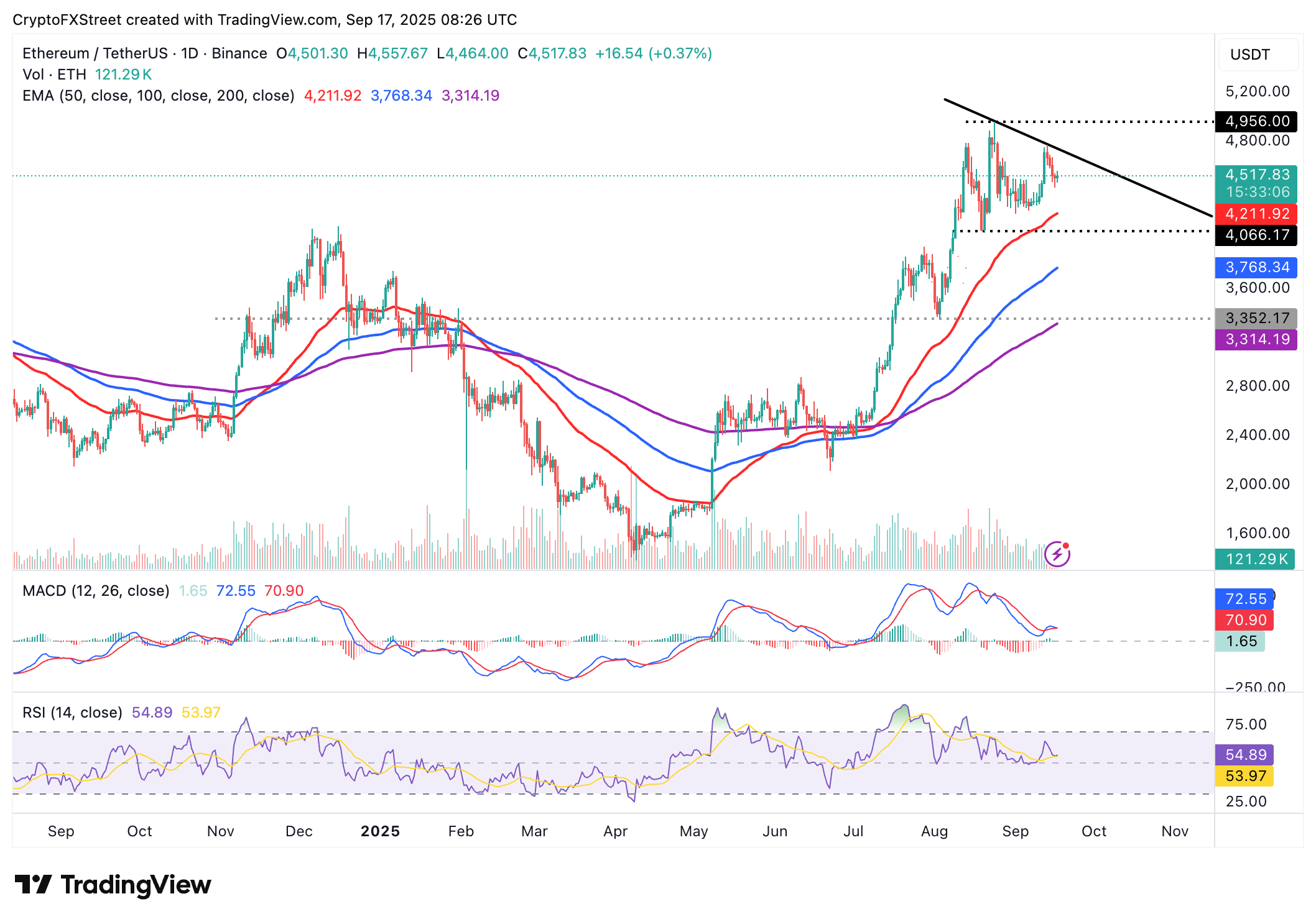 Aún así, los compradores de Ethereum podrían defender el caso alcista si ocurre una reversión significativa desde el soporte a corto plazo de 4.500$. Desde aquí, el siguiente nivel clave es el área alrededor de 4.800$, que lleva al máximo histórico de 4.956$.