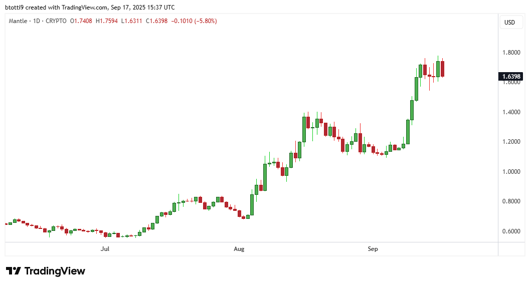 El anuncio catalizó un repunte inmediato de los precios de Mantle, con MNT subiendo más del 15% para superar su máximo anterior de 1,68 dólares establecido el mes pasado.