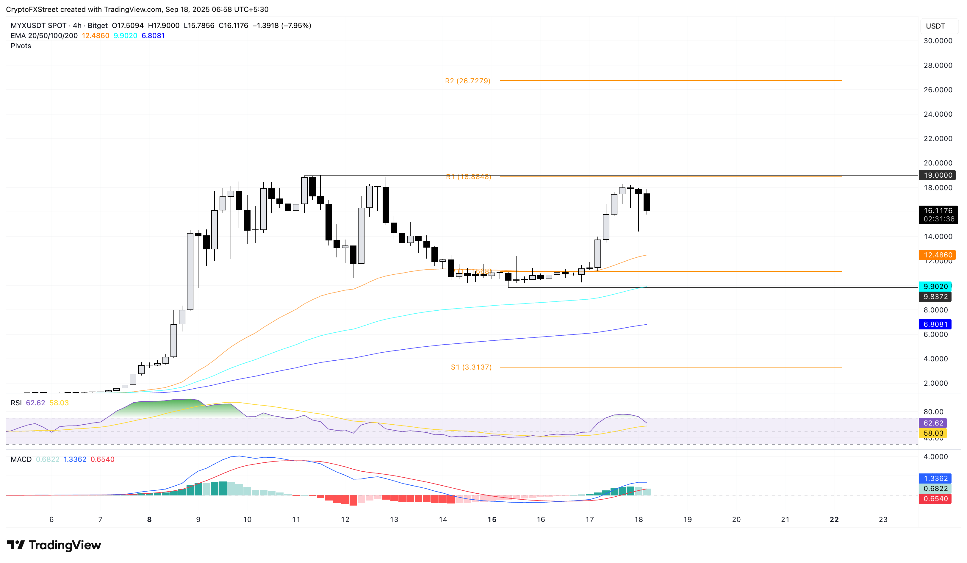 Si el retroceso se intensifica, MYX podría probar la Media Móvil Exponencial (EMA) de 50 períodos en 12.48$, seguida del nivel de soporte de 9.83$ marcado el lunes.
