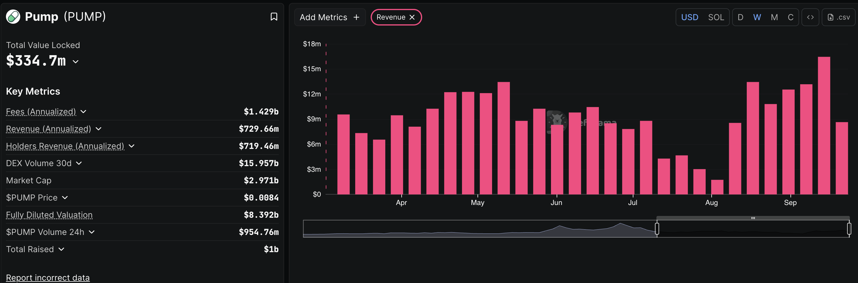 Ingresos semanales de Pump.fun. Fuente: DeFiLlama