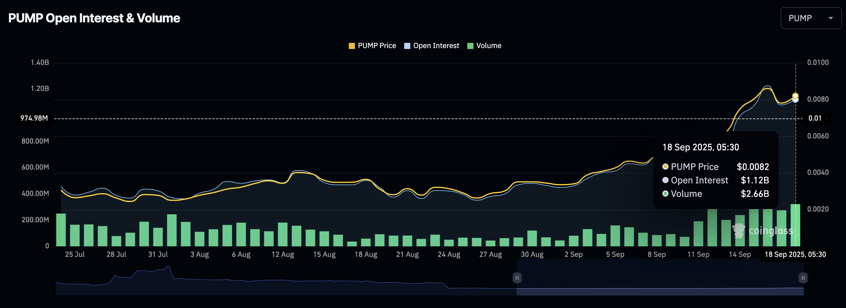 Interés Abierto de PUMP. Fuente: CoinGlass