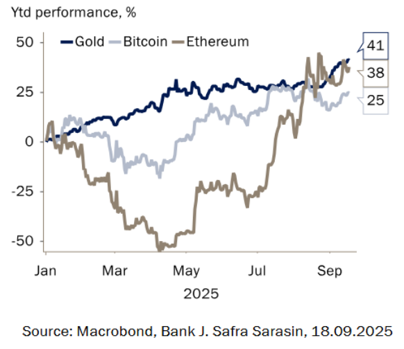 Gráfico 3: El oro supera al Bitcoin y al Ethereum