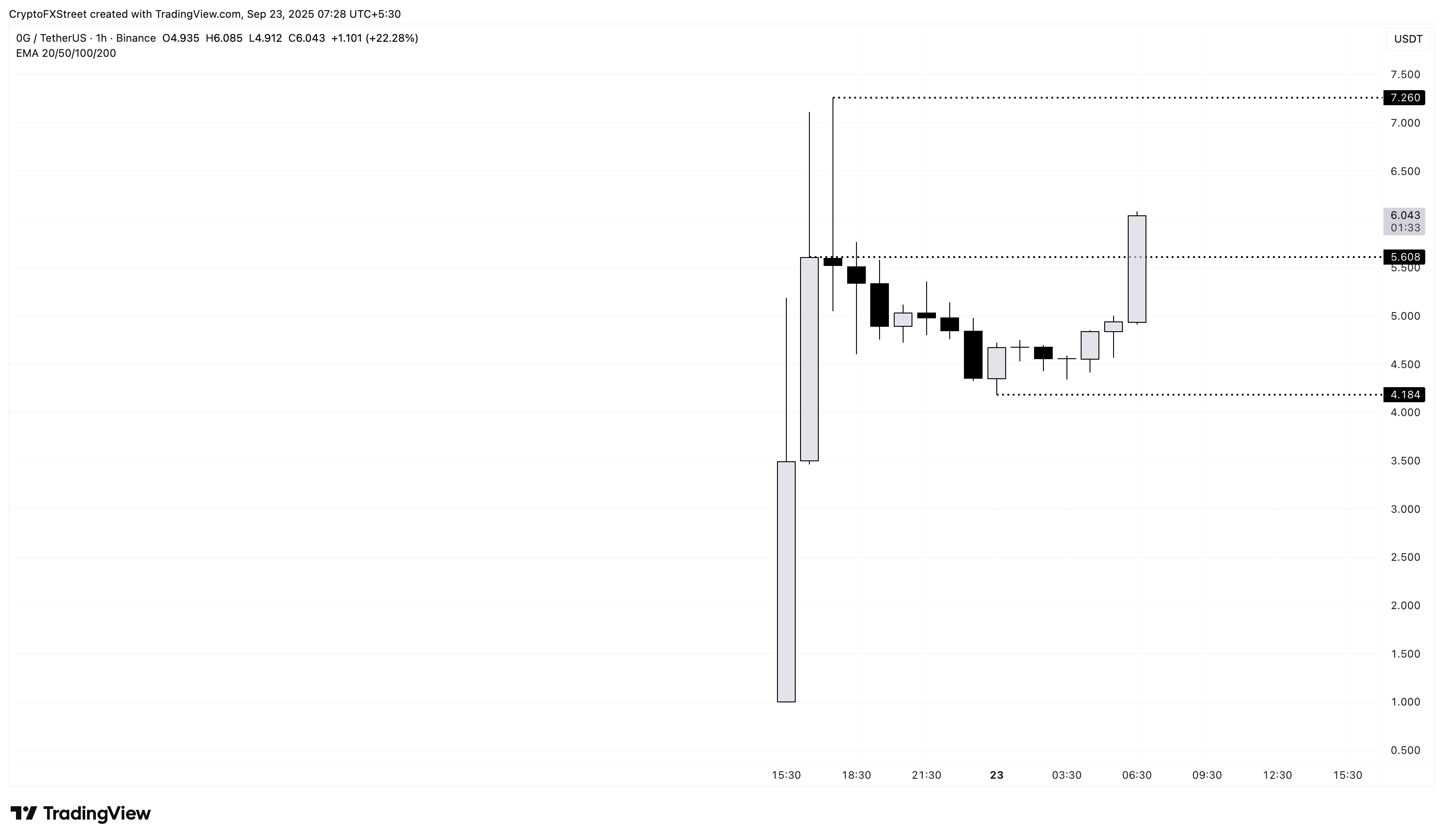 Gráfico de precios de 0G/USDT en 1 hora.