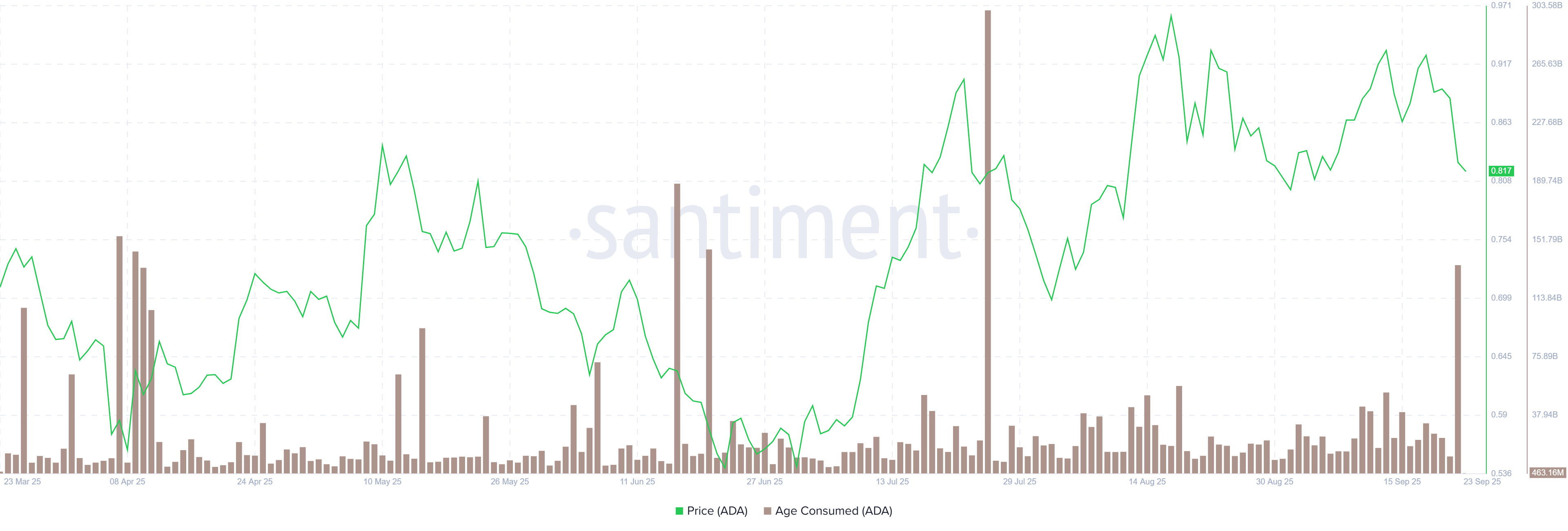 Gráfico de Edad consumida de Cardano. Fuente: Santiment
