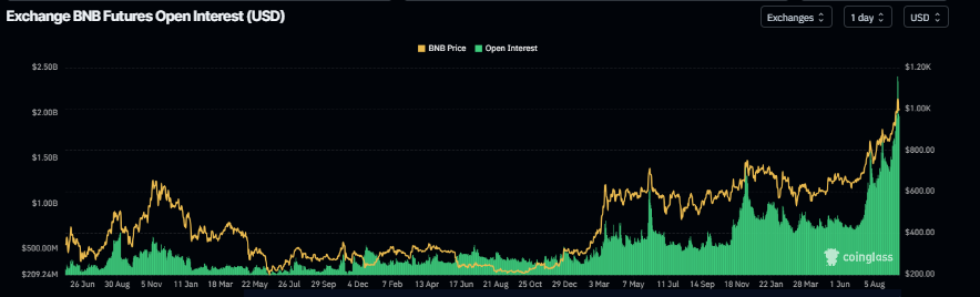 Gráfico de interés abierto de BNB. Fuente: Coinglass
