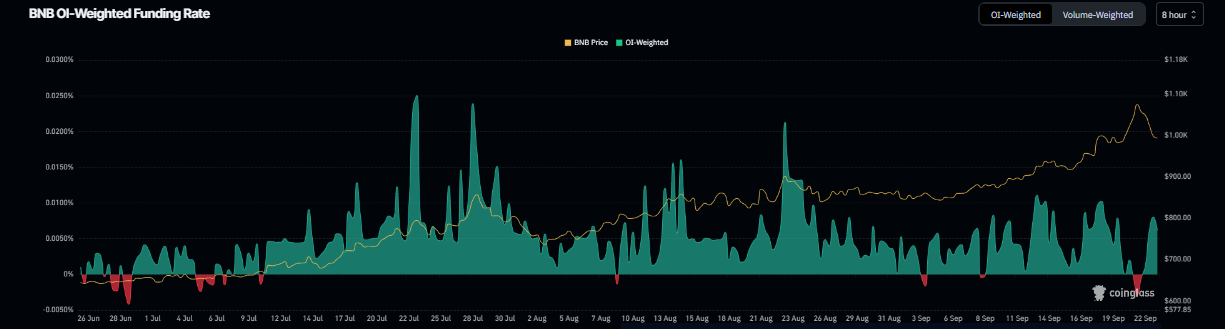 Gráfico de tasa de financiación de BNB. Fuente: Coinglass