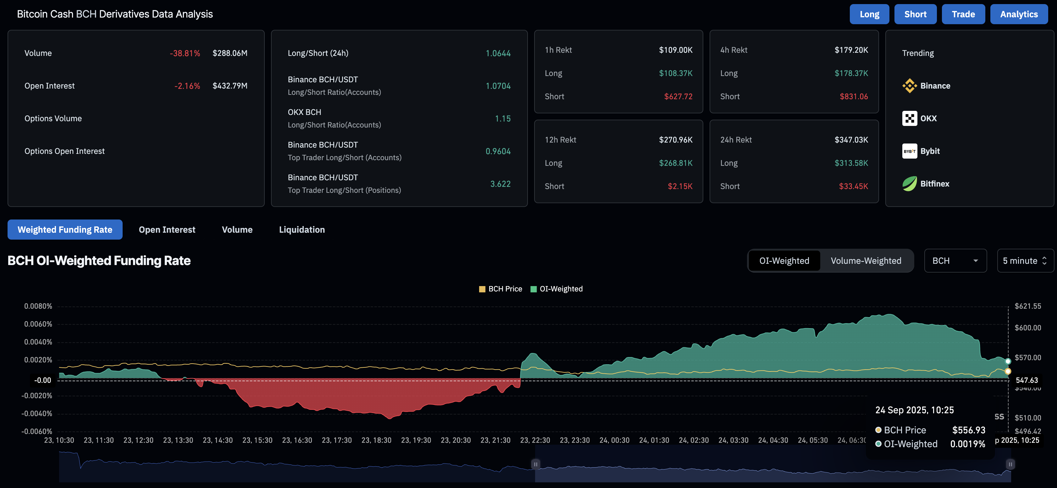 Derivados de Bitcoin Cash. Fuente: CoinGlass