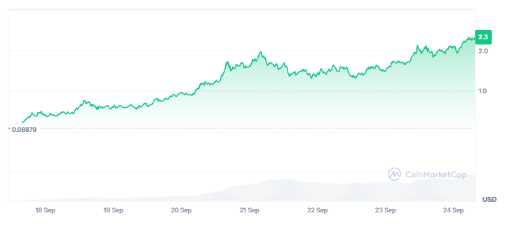 Aster (ASTER), el token gobernanza del exchange descentralizado (DEX) homónimo, está experimentando un crecimiento meteórico y acaba de superar la barrera de 2 dólares.