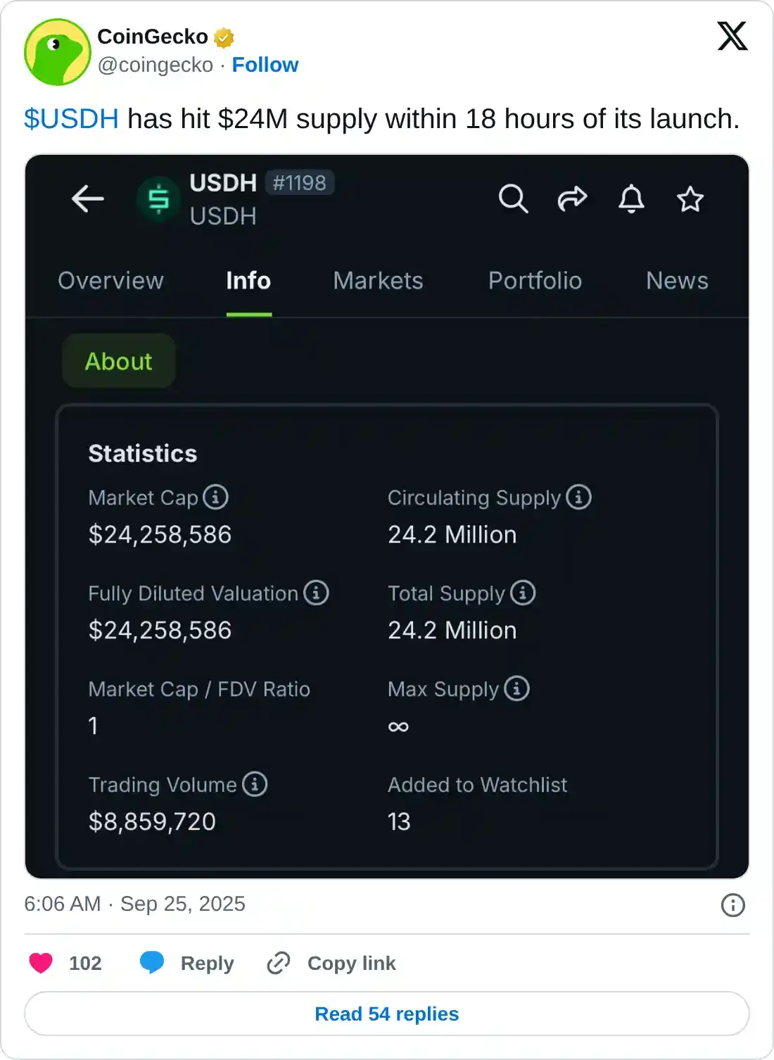 El USDH alineado con Hyperliquid, impulsado por Native Markets, fue lanzado el miércoles, con un suministro total que superó los 24 millones de dólares en 18 horas desde su inicio. A pesar de que el 50% de los ingresos de USDH van al Fondo de Asistencia de Hyperliquid, un fondo de recompra impulsado por el protocolo, el lanzamiento de esta stablecoin no logró elevar el sentimiento de los operadores.