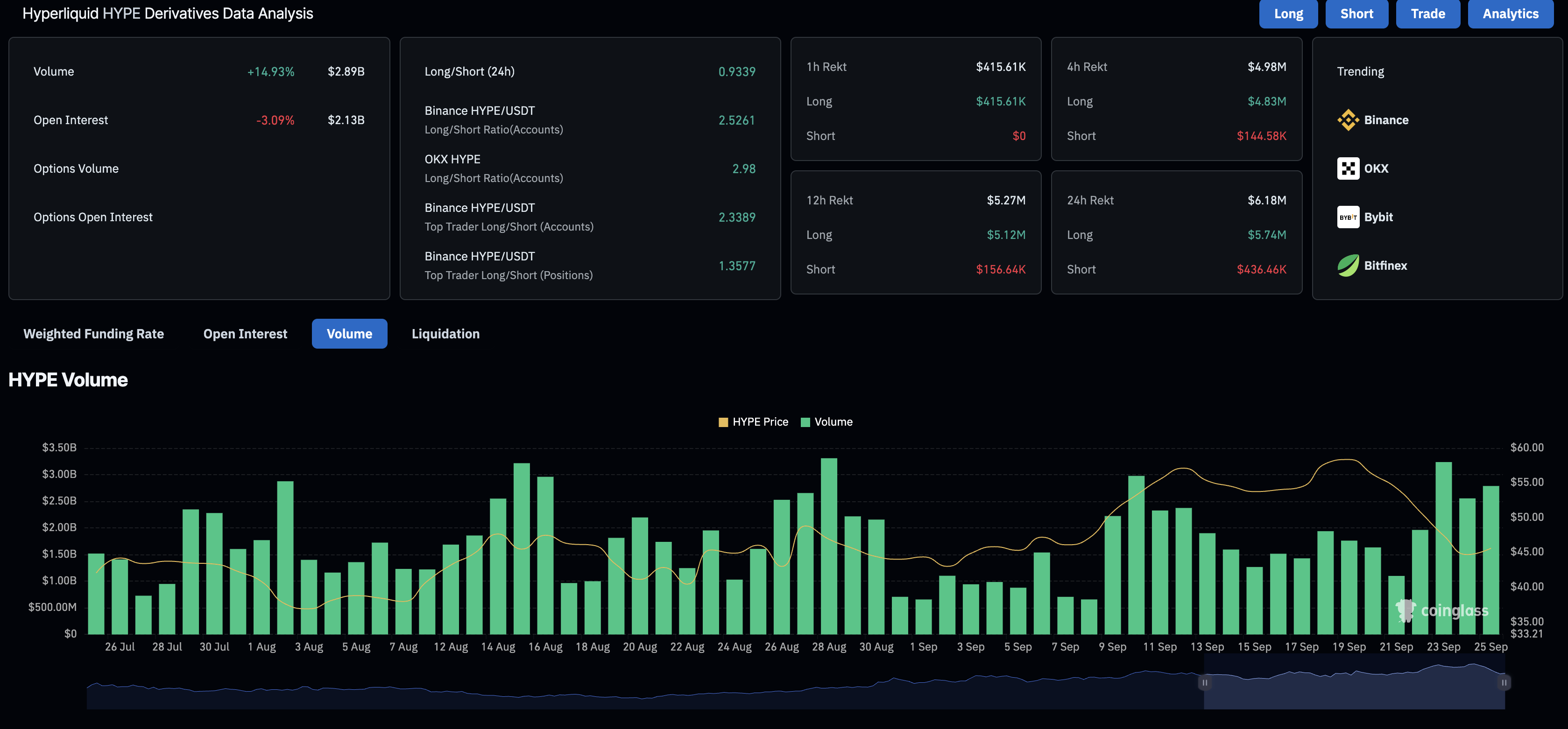 Datos de derivados de Hyperliquid. Fuente: CoinGlass