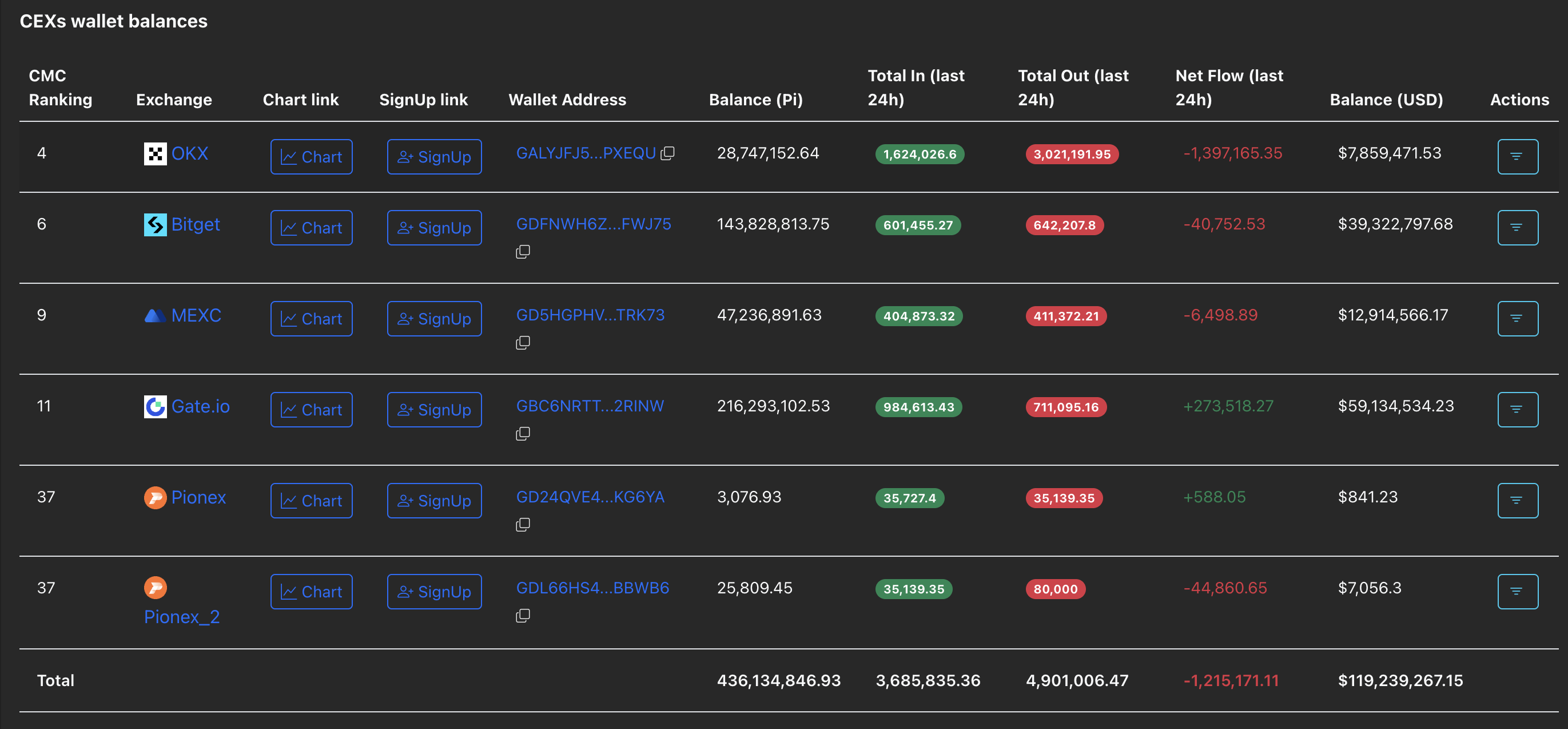 Con un potencial alcista, los saldos de las carteras de CEX mantienen un flujo neto de salida, lo que indica que los operadores continúan comprando en la caída. Los datos de PiScan sugieren que se han retirado más de 1.21 millones de tokens PI de los CEX, continuando la tendencia de salida neta de 1.94 millones de PI y 7.96 millones de tokens PI, como se informó anteriormente.