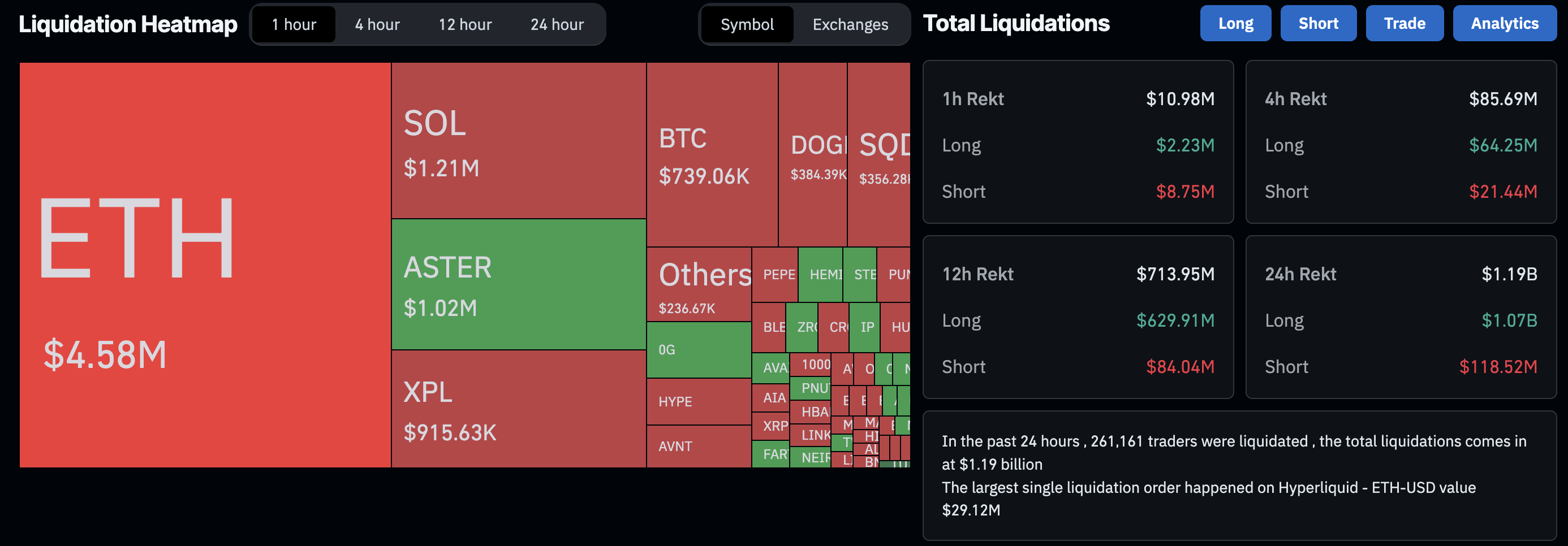Liquidaciones en el mercado de criptomonedas. Fuente: CoinGlass