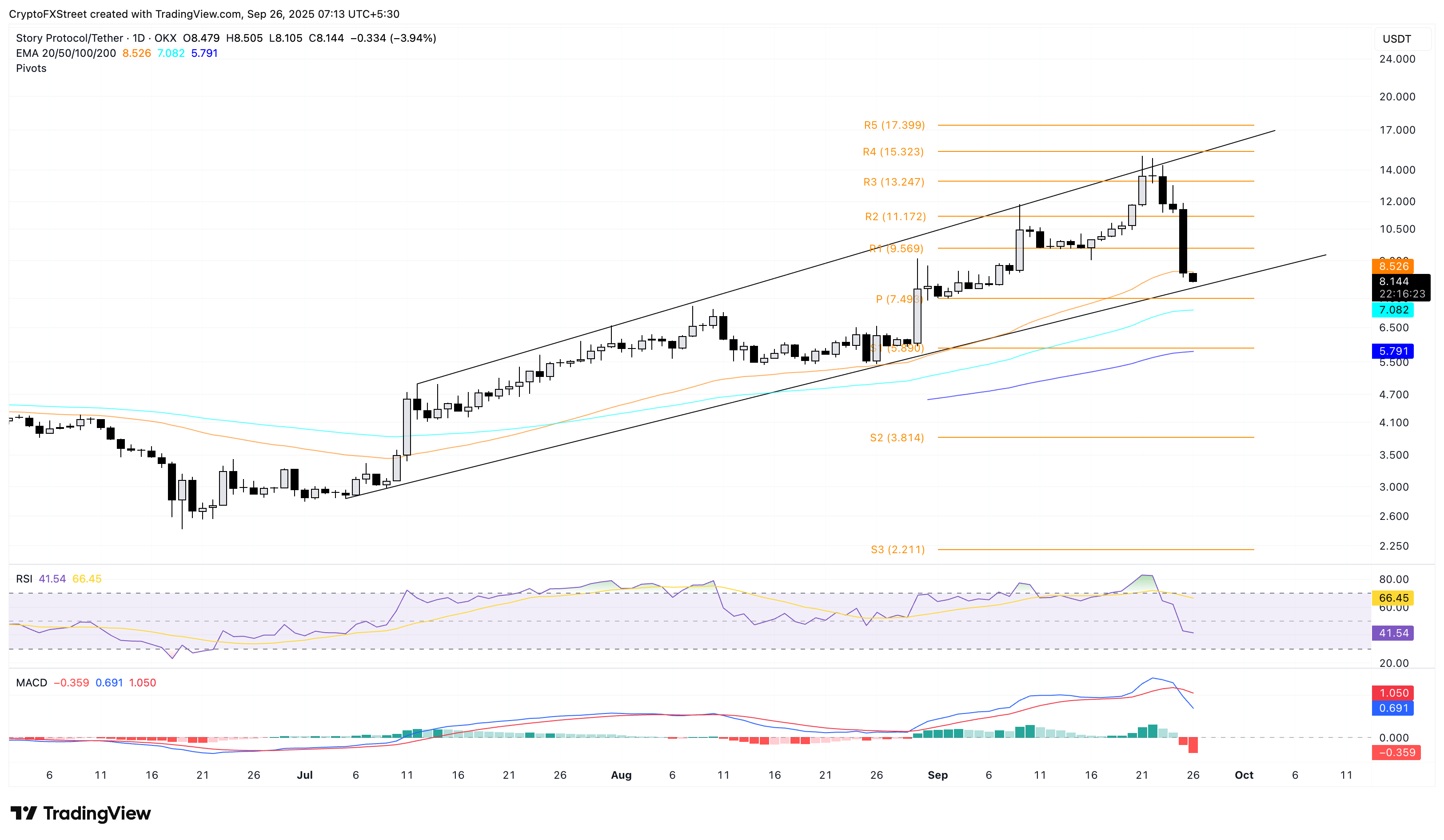 Story baja un 4% al momento de la publicación el viernes, extendiendo la caída del 26% del día anterior. La tendencia a la baja durante el cuarto día consecutivo pone a prueba el límite inferior de un patrón de canal ascendente en el gráfico diario.