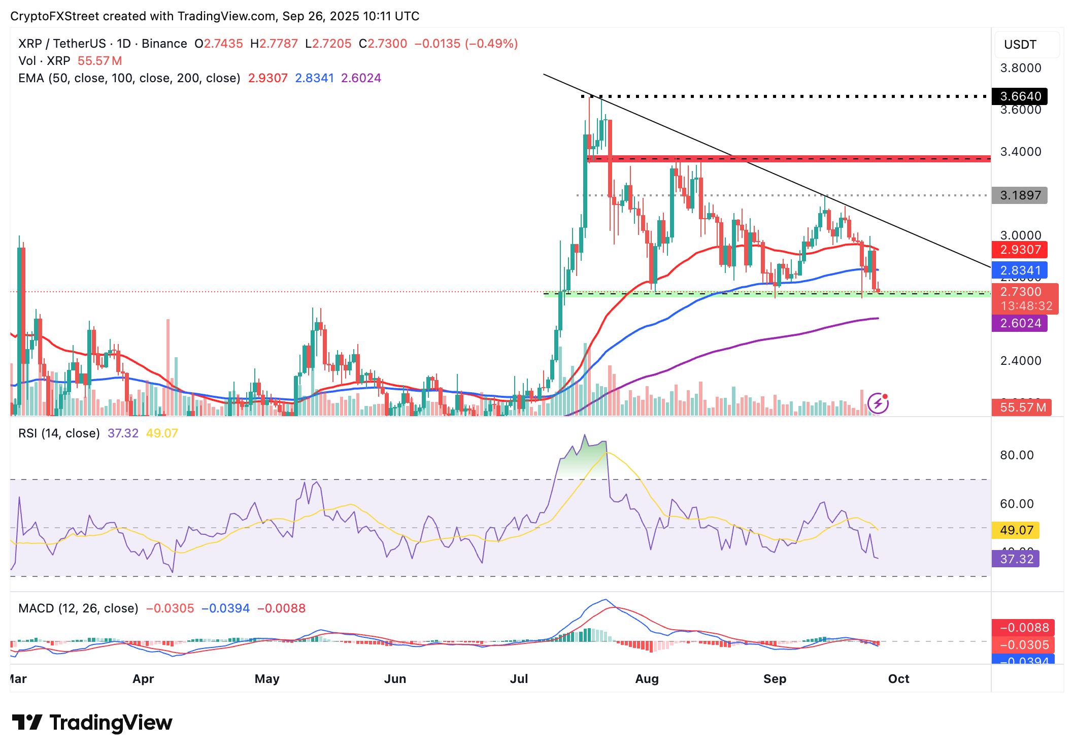 Mientras tanto, $XRP ha enfrentado una notable caída en el interés minorista. El interés abierto (OI) de futuros, que actualmente promedia 7.400 millones de dólares, alcanzó un máximo de 8.950 millones de dólares en septiembre. OI se refiere al valor nocional de los contratos de futuros pendientes. Por lo tanto, una disminución persistente en esta métrica implica que los operadores están perdiendo cada vez más confianza en la capacidad del token para mantener ganancias. También podría indicar que las apuestas por precios más altos de $XRP están en caída libre, aumentando las posibilidades de una tendencia bajista prolongada.