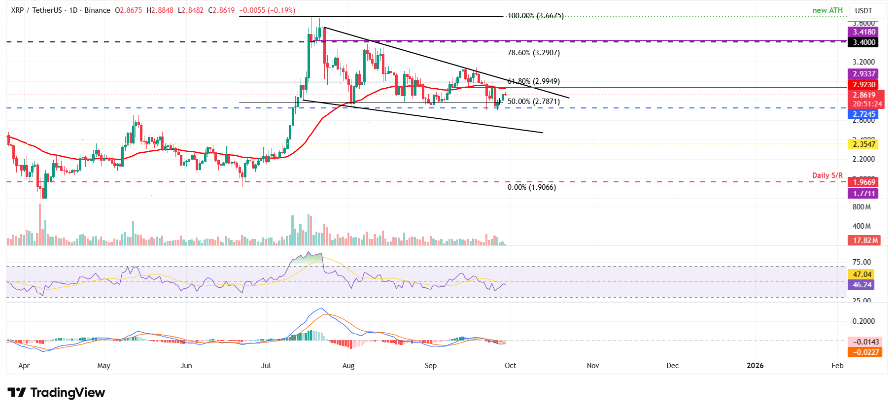 Si XRP cierra por encima del nivel de resistencia de 2.93 $, podría extender el repunte hacia el nivel psicológico clave en 3 $.