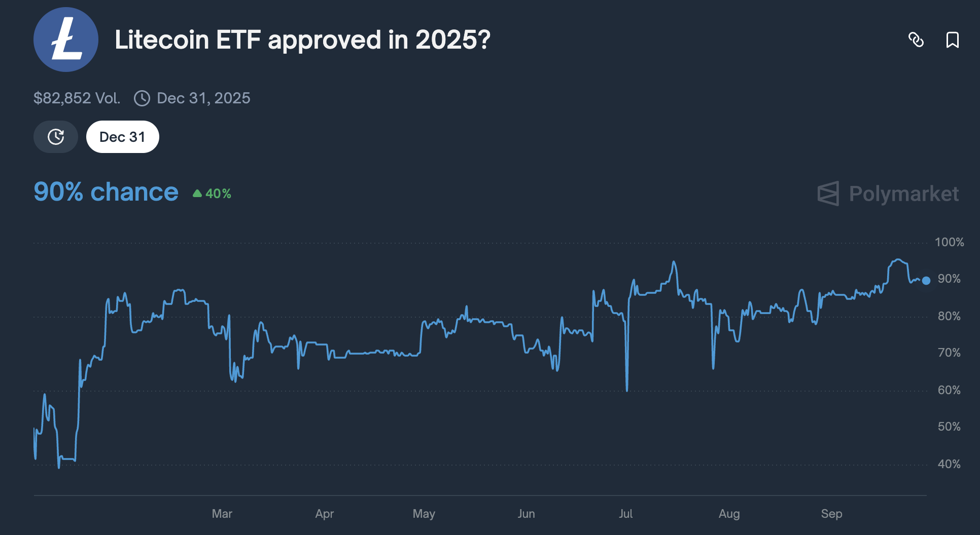 Mercado de aprobación del ETF de Litecoin. Fuente: Polymarket