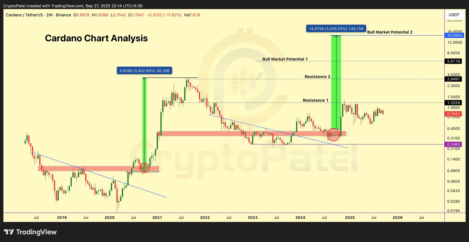Crypto Patel recordó a sus seguidores en X cómo Cardano fue descartado cuando cotizaba por debajo de 0.02 dólares como un nombre más en un mar de tokens. Avanzando rápidamente, ADA se ha convertido en una plataforma completa, compatible con contratos inteligentes, aplicaciones DeFi y una base de desarrolladores activa. El sentimiento ha cambiado antes, y en el sector cripto, suele cambiar rápidamente.