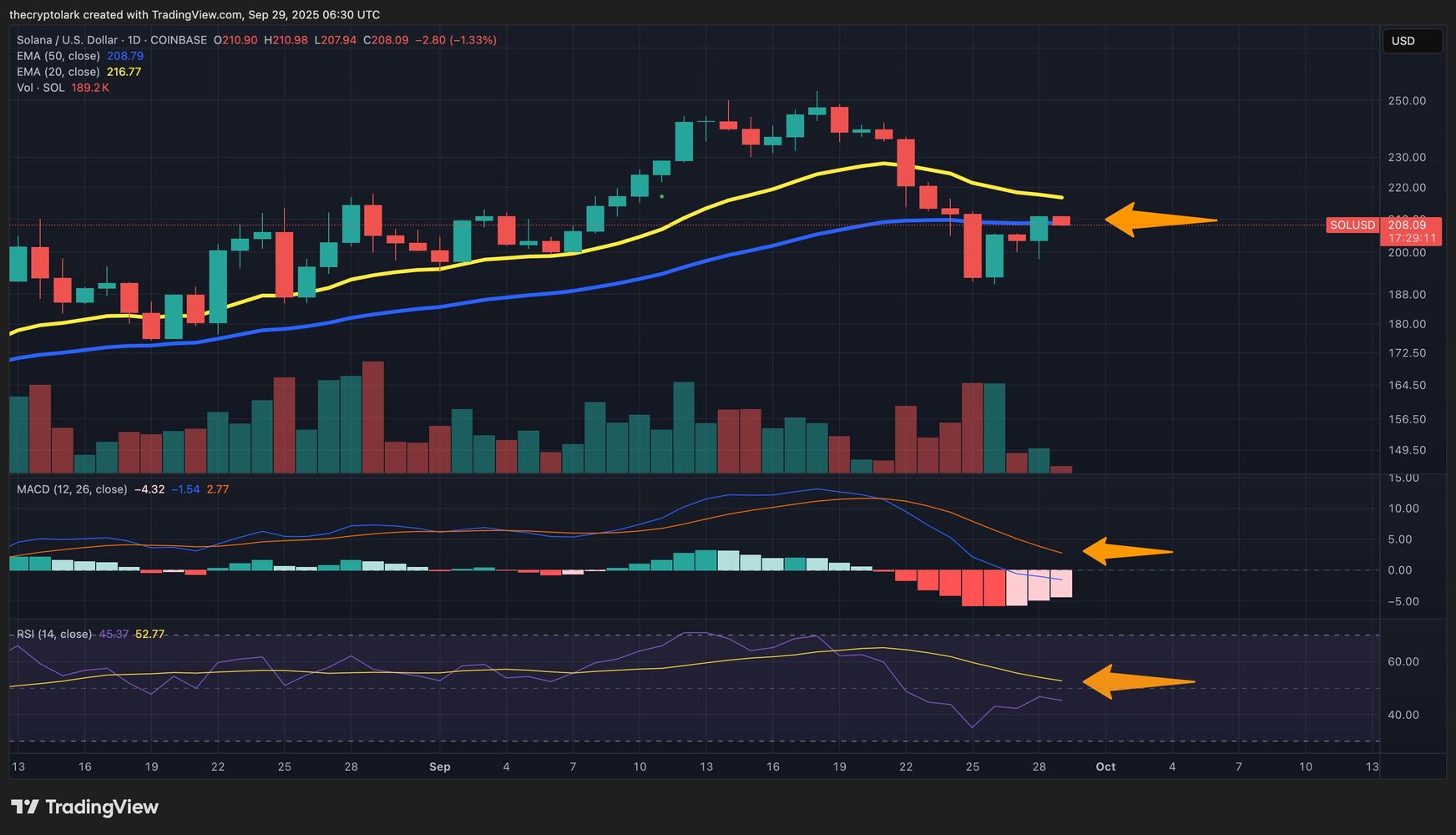 Esta media móvil históricamente ha proporcionado tanto soporte como resistencia para SOL, lo que convierte esta nueva prueba en un momento clave para los operadores que observan la dirección a corto plazo de la criptomoneda.