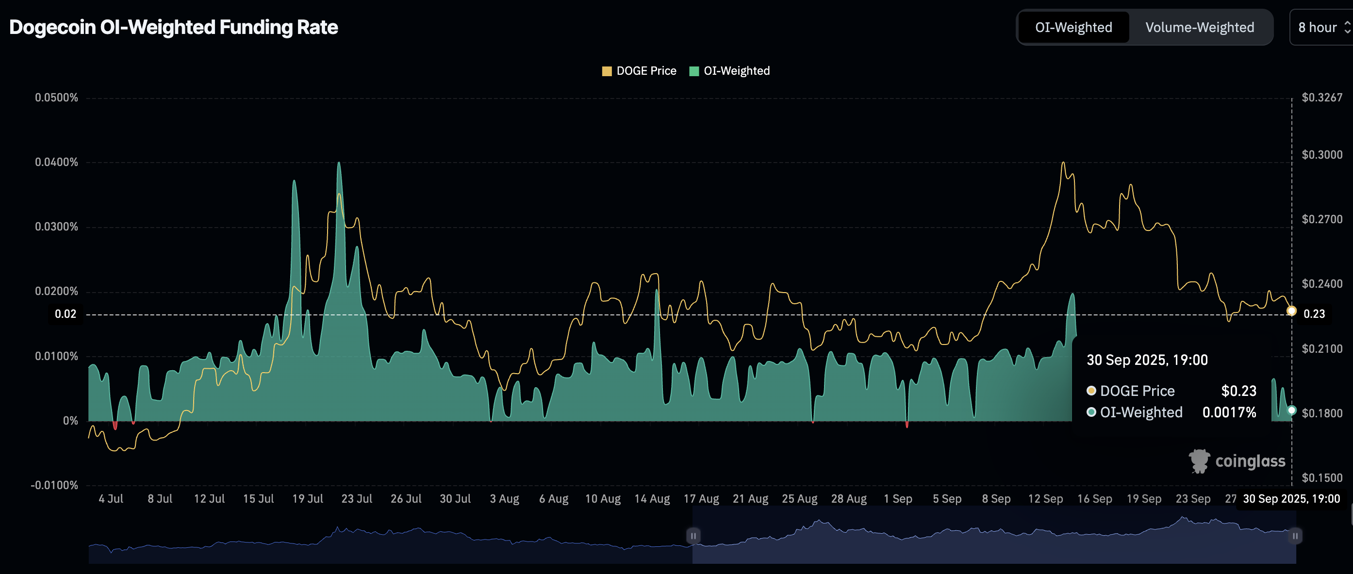 Tasa de financiación ponderada por OI de Dogecoin | Fuente: CoinGlass