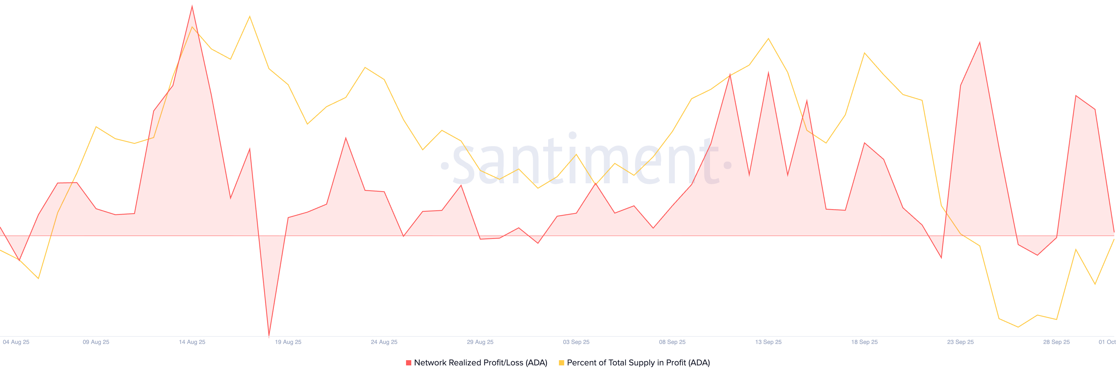 En medio de la nueva asociación, los datos de Santiment muestran una disminución en la presión de venta. El Beneficio/Pérdida Realizada de la Red (NRPL) en 1,53 millones de ADA, bajando de 33,71 millones de ADA el martes, indica una disminución significativa en la toma de beneficios, lo que limita el riesgo de una oferta inmediata en exceso.