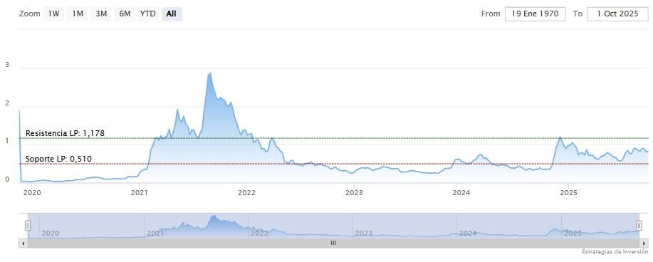 La resistencia a mediano plazo se encuentra en los 1.01 dólares. Mientras, los indicadores de Ei se muestran mixtos.