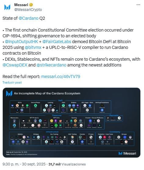 El tercer trimestre 2025 ha terminado para el sector de las criptomonedas y algunas criptomonedas han podido celebrar éxitos como Cardano (ADA) marcando varios hitos como una nueva elección de gobernanza, el trabajo técnico en la integración de Bitcoin y la actividad constante en tokens y plataformas de intercambio según Godfrey Benjamin en The Coin Republic.