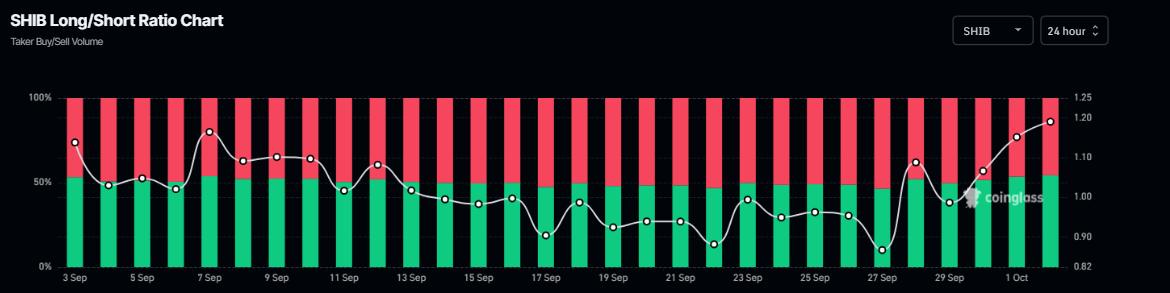 Además, el ratio largo-corto de Coinglass marca 1.20 el jueves, el nivel más alto en más de un mes. Este ratio, por encima de uno, refleja un sentimiento alcista en los mercados, ya que más operadores están apostando a que el precio de SHIB suba.