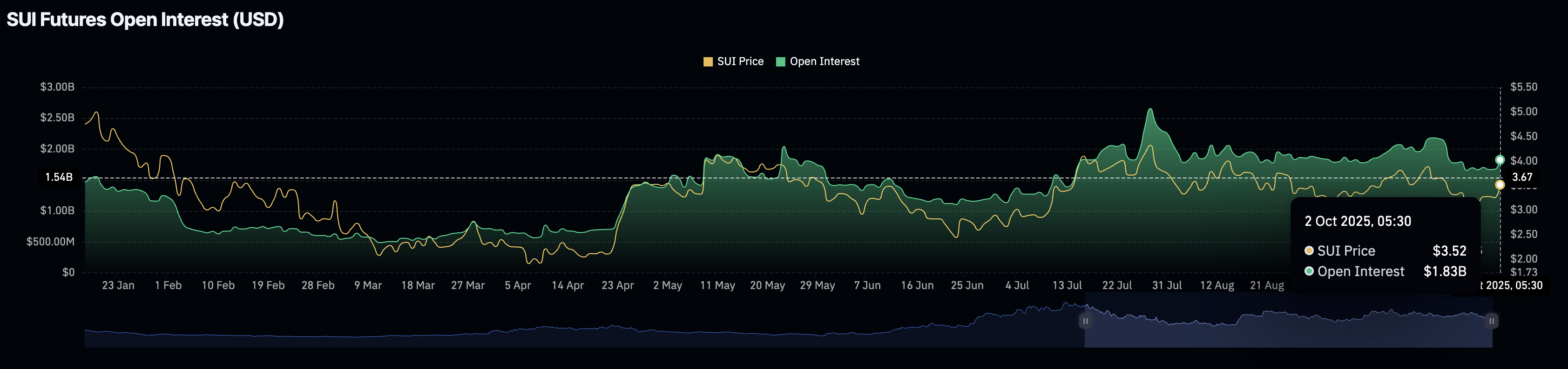 Los datos de CoinGlass indican que el Interés Abierto (OI) de SUI ha aumentado a 1.83 mil millones de dólares, desde 1.68 mil millones de dólares el miércoles. Esto sugiere un sentimiento de riesgo entre los operadores de derivados de SUI.