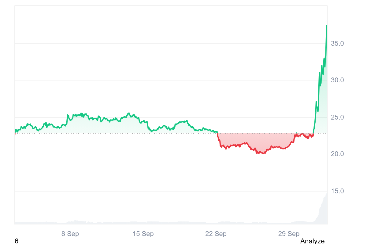 “$DASH ha explotado fuera de su canal horizontal de larga data después de meses de consolidación lateral”, publicaron en X. DASH había estado atrapado entre 18 y 26 años durante casi la mitad del año, construyendo una base sólida. El reciente aumento finalmente rompió la resistencia del canal con un gran volumen, confirmando una ruptura alcista”.
