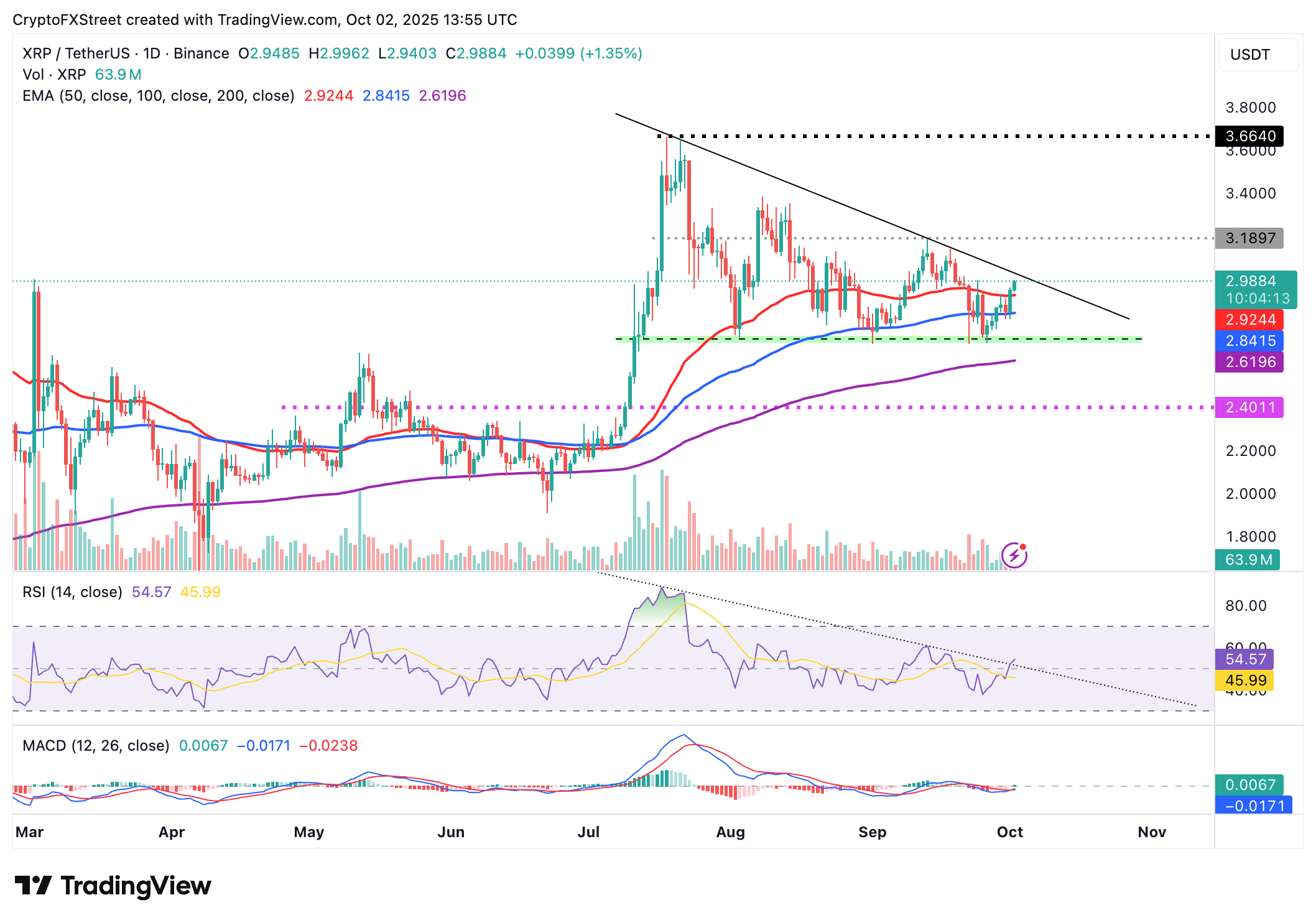Perspectiva técnica: los alcistas de $XRP apuntan a un breakout por encima de 3.00$