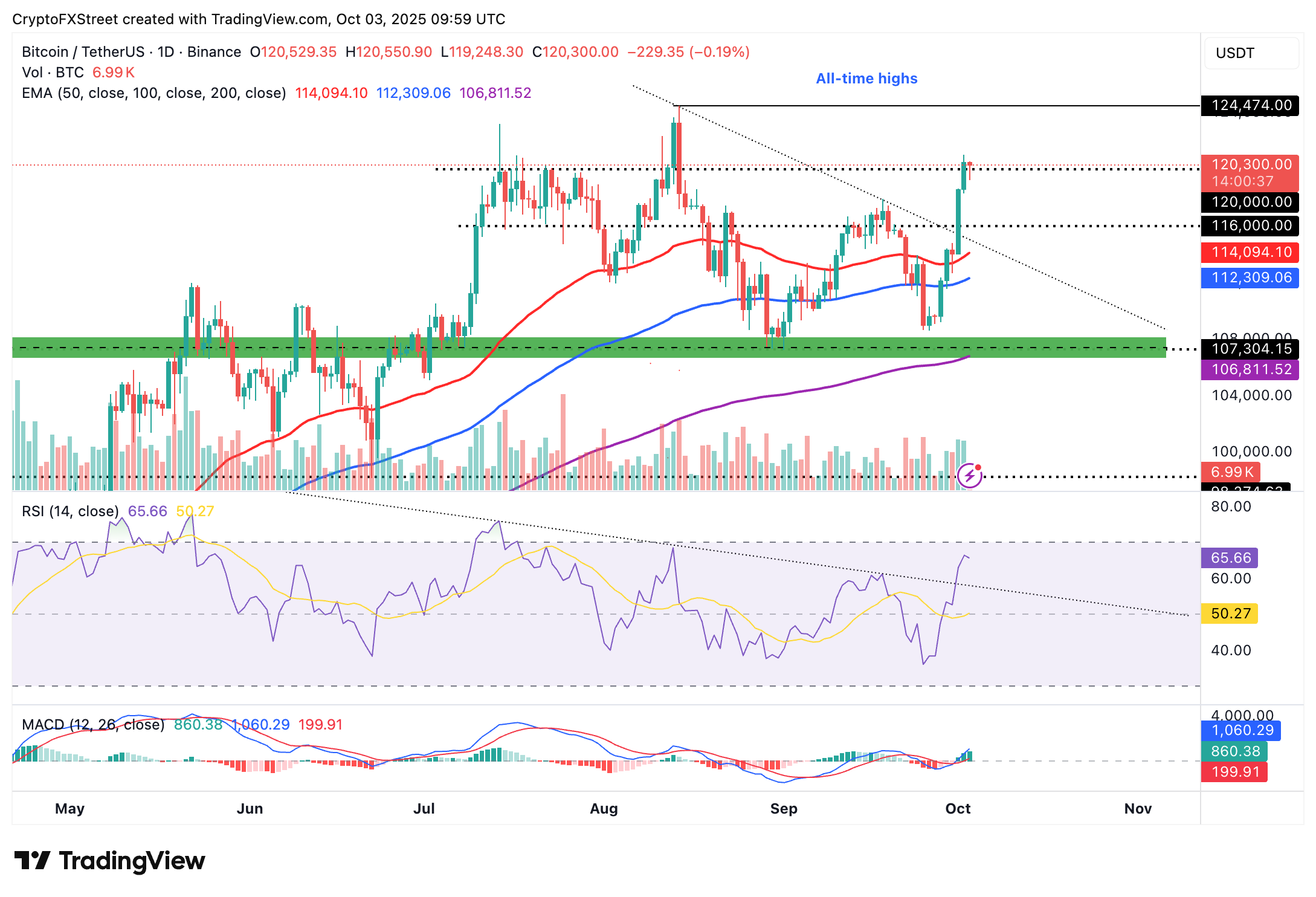 Un cierre diario por encima de 120.000$ afirmaría el control alcista, aumentando las probabilidades de que el repunte se extienda hacia el máximo histórico de BTC de 124.474$, alcanzado el 14 de agosto.
