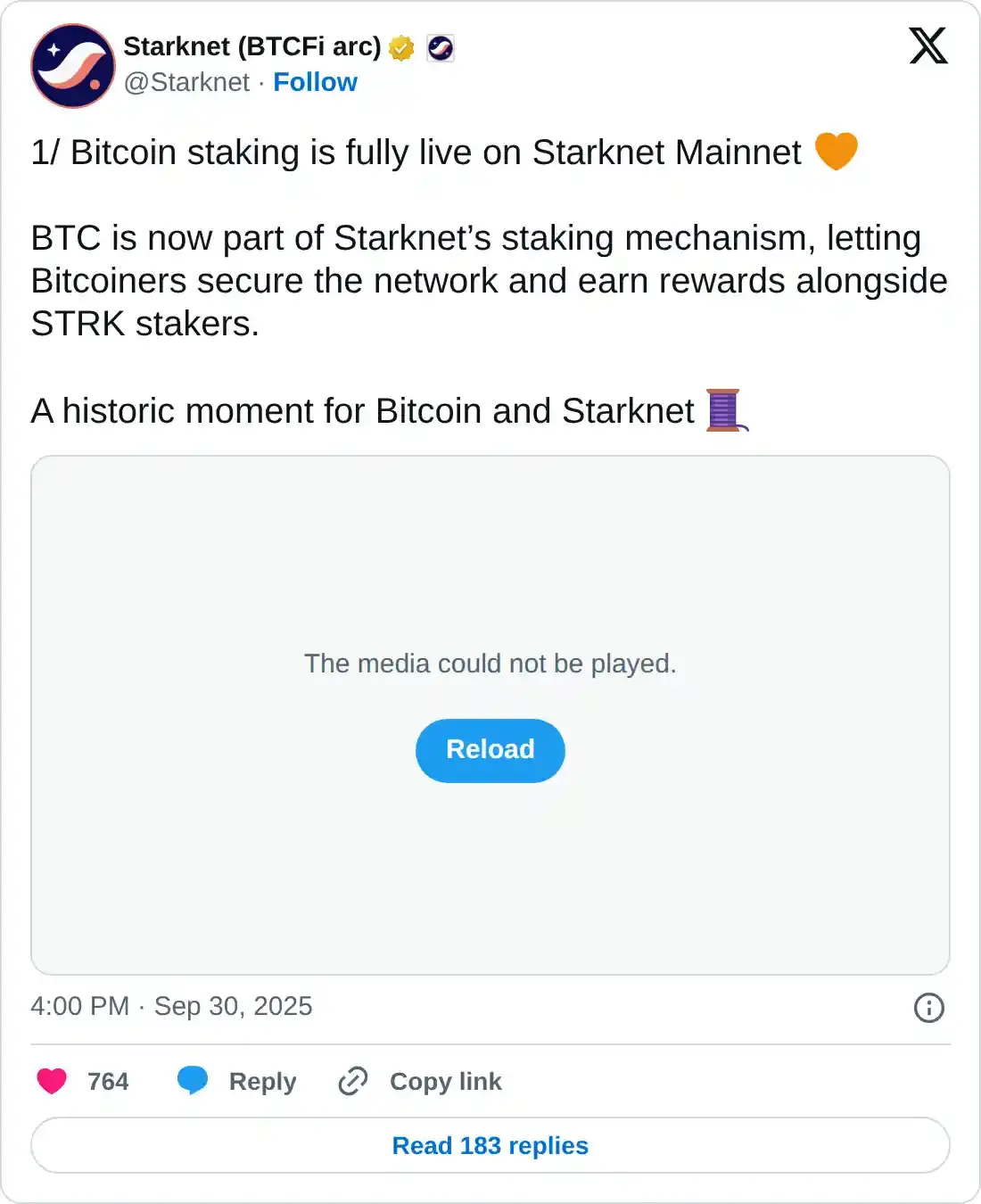 Starknet anunció el staking de Bitcoin en su mainnet la semana pasada, incorporando BTC en su consenso de red. El token STRK sigue siendo el principal titular de peso de consenso, manteniendo el 75% del peso, mientras que BTC ahora sostiene el 25% con las recompensas de staking representando un 25% de las emisiones de STRK.