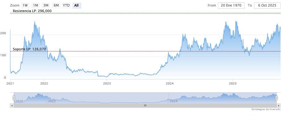 La resistencia a mediano plazo se encuentra en los 253.50 dólares. Mientras, los indicadores de Ei se muestran mixtos.