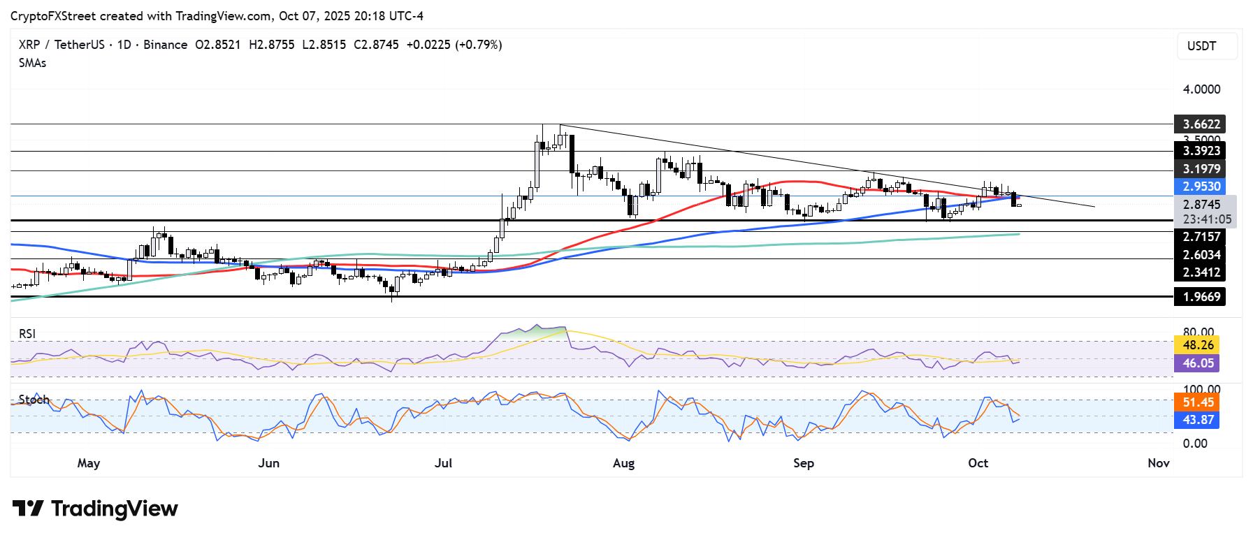 XRP corre el riesgo de caer a 2.71$ si los toros no logran recuperar la convergencia de las SMA