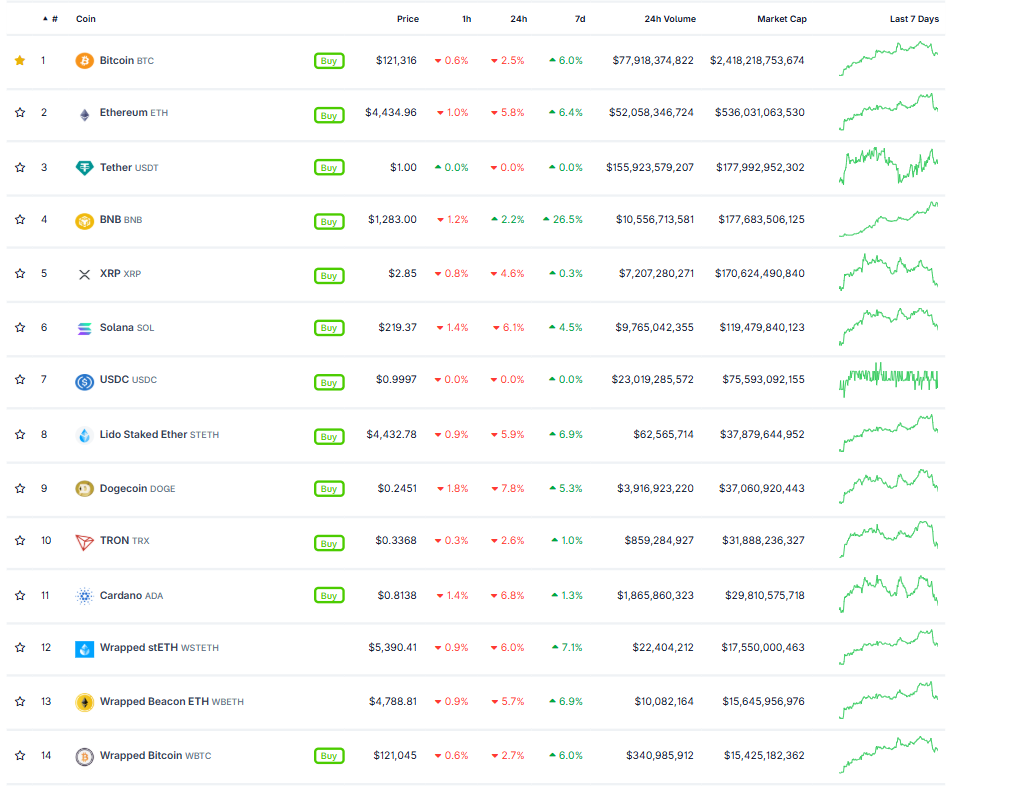 La semana comenzó positivamente para el mercado de criptomonedas, con precios en aumento a medida que Bitcoin (BTC) alcanzó un nuevo máximo histórico de 126.199$ el lunes, seguido por un aumento de las principales altcoins en conjunto con BTC. Sin embargo, las ganancias del mercado de criptomonedas se desvanecieron el martes, ya que la toma de beneficios hizo que BTC cayera más del 2.5% para cerrar por debajo de 121.500$. Además, los temores de un prolongado cierre del gobierno de EE.UU., que ahora está en su segunda semana, aumentan la incertidumbre económica y pesan sobre los activos de riesgo.