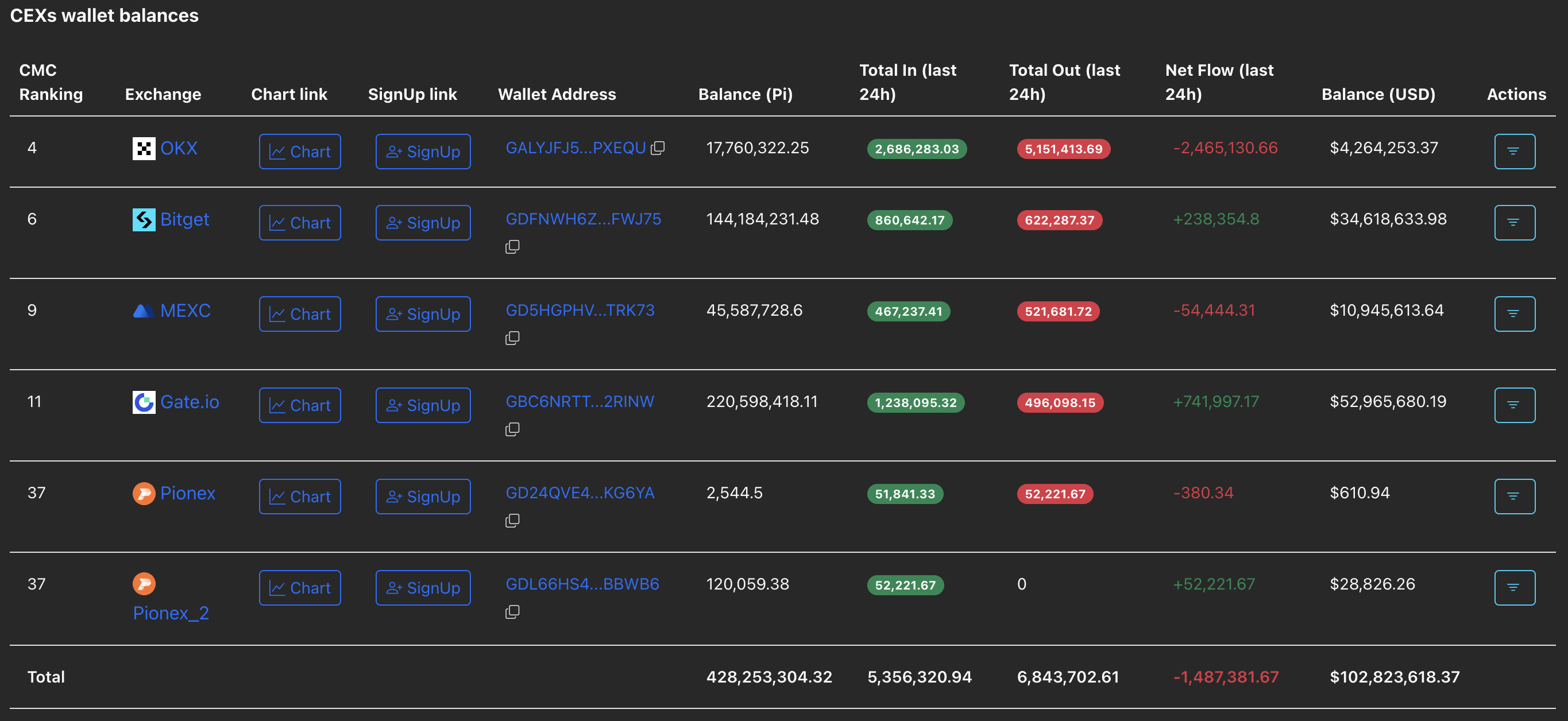 Balances de billeteras de CEX. Fuente: PiScan