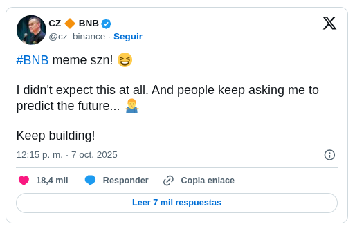 Oficialmente es la temporada de memecoins de BNB. El volumen diario de DEX de BNB Chain ha superado los 6 mil millones de dólares intradía, con una parte considerable ahora liderada por memecoins de BNB. La tendencia despegó después de que el ex CEO de Binance, CZ, publicara “#BNB meme szn”, provocando una avalancha de nuevos lanzamientos impulsados por la comunidad.