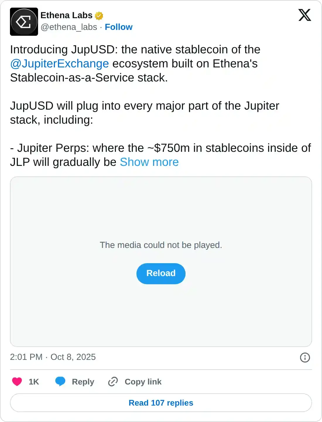 Ethena anunció el desarrollo de JupUSD, una stablecoin nativa para el Jupiter Exchange basado en Solana, el miércoles, con un lanzamiento esperado en los próximos meses. JupUSD reemplazará casi 750 millones de dólares de stablecoins existentes en el pool JLP de Jupiter Perps.