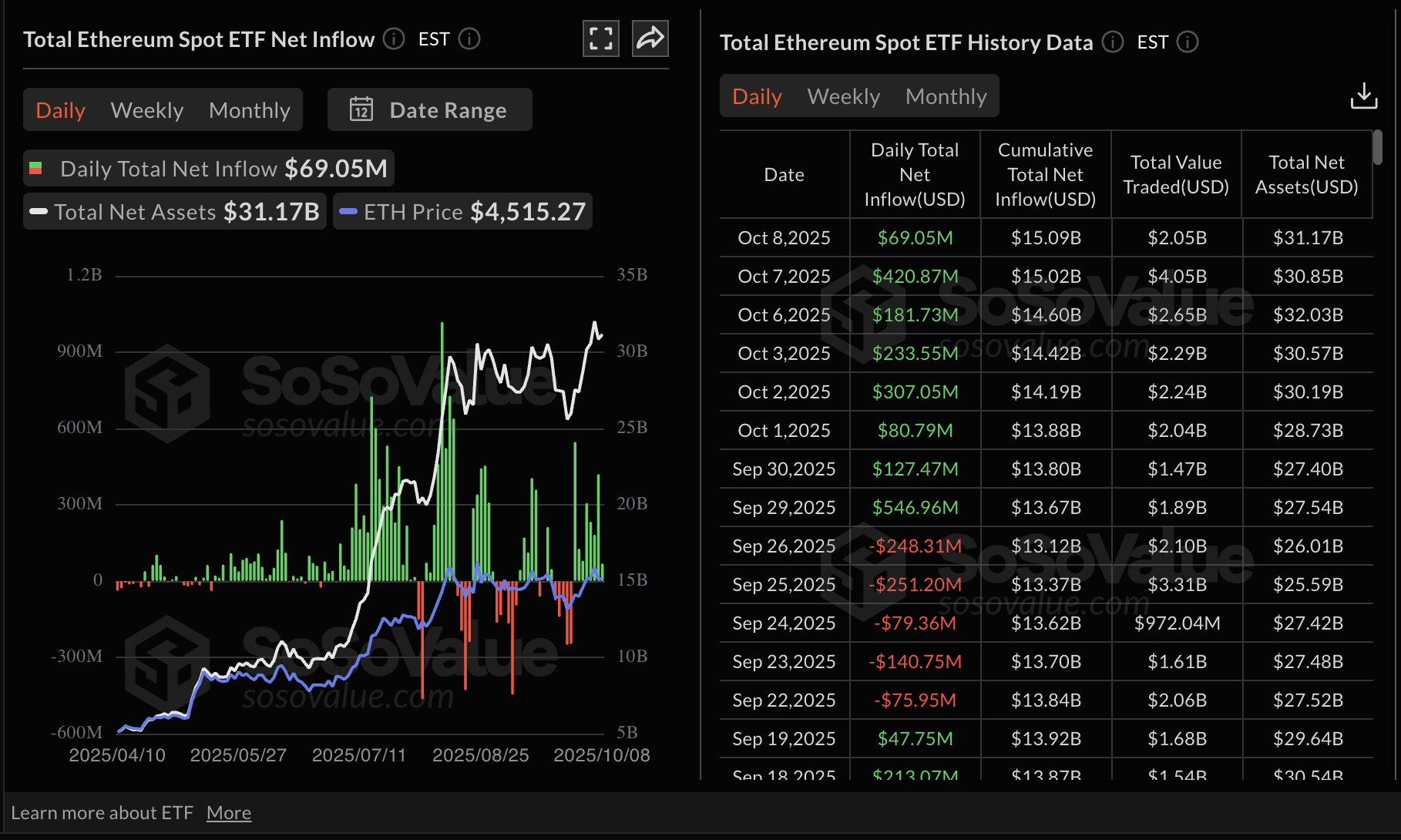 Estadísticas de ETF de Ethereum | Fuente: SoSoValue