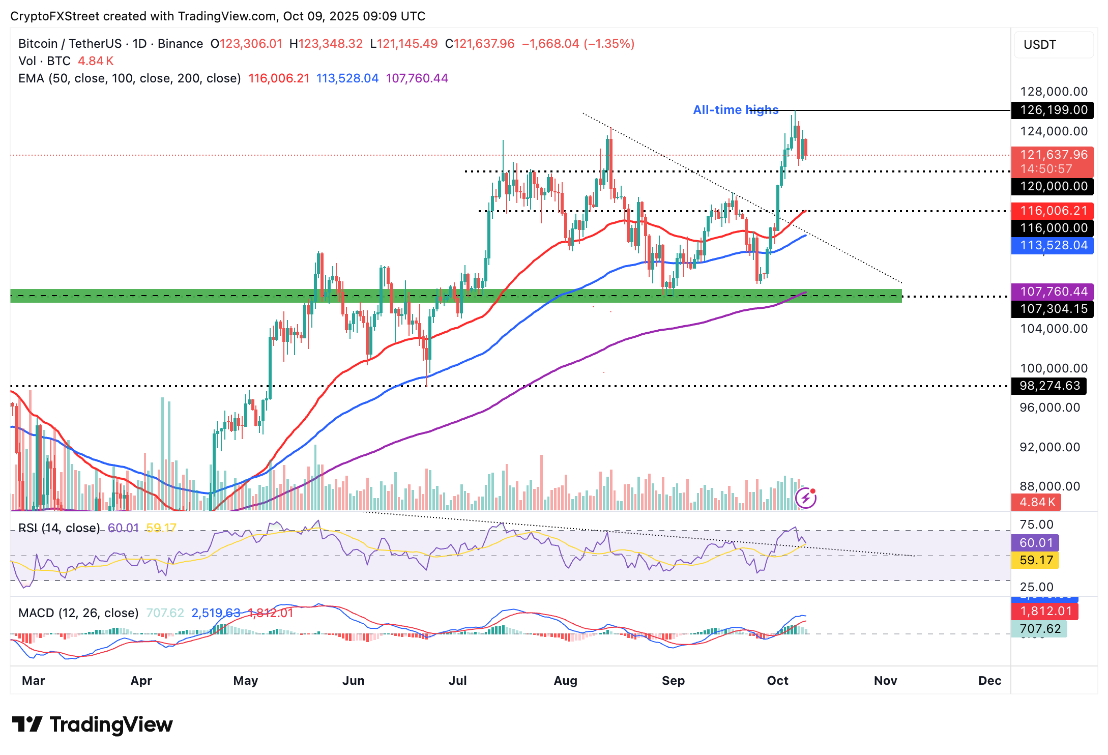 Aún así, si se rompe el soporte de 120.000$, la toma de beneficios y el sentimiento general de aversión al riesgo podrían desencadenar una corrección prolongada hacia la media móvil exponencial (EMA) de 50 días en 116.006$. Otros niveles clave que los operadores deben considerar incluyen la EMA de 100 días en 113.528$ y la EMA de 200 días en 107.760$, ambos podrían servir como áreas de soporte tentativas.