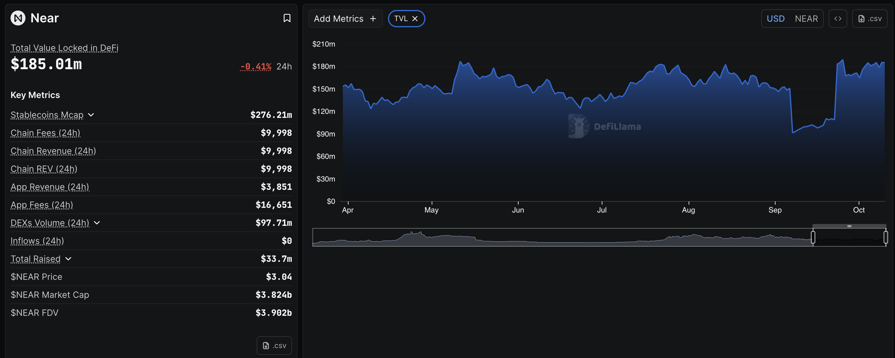 TVL de Near Chain. Fuente: DeFiLlama