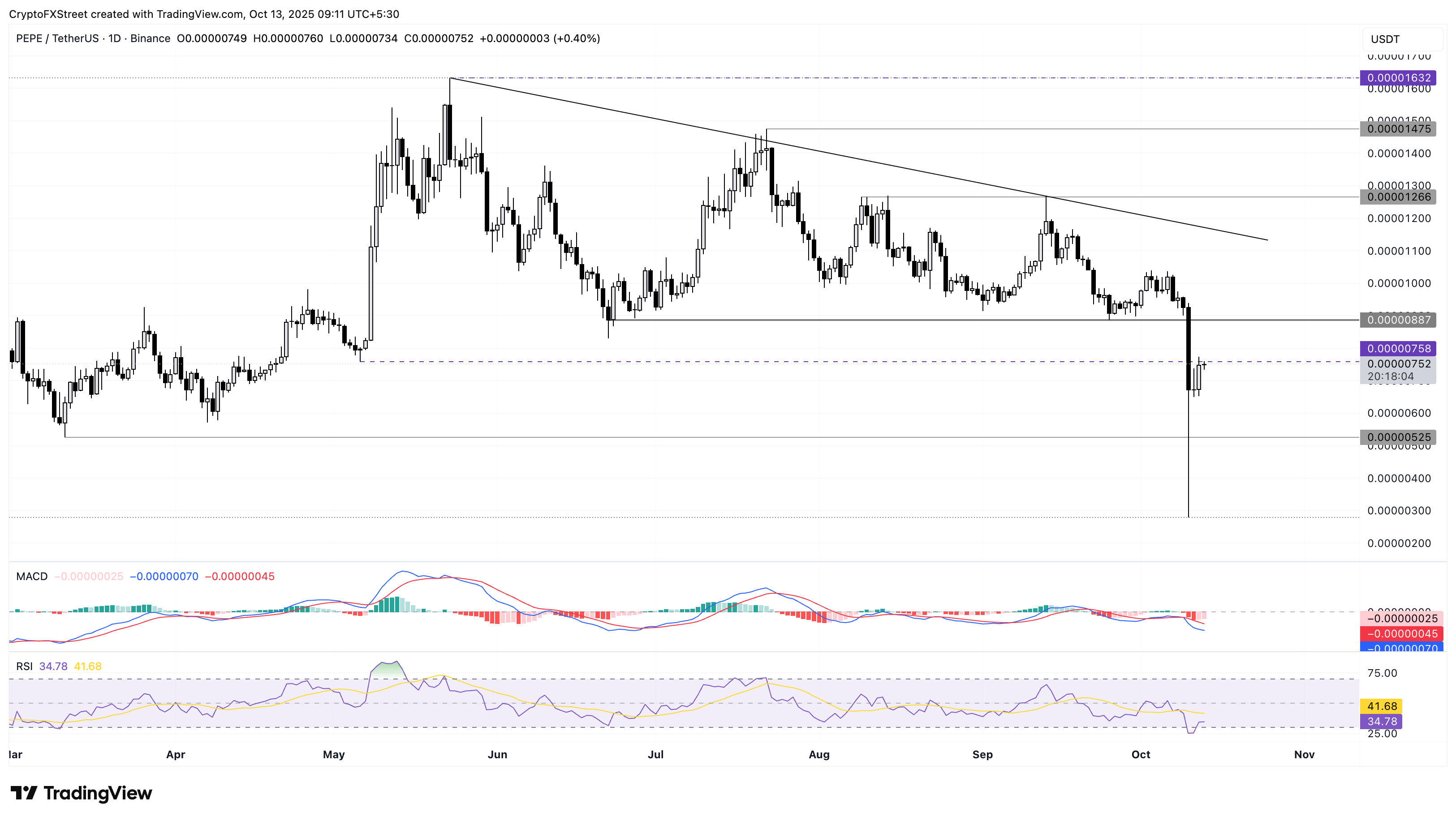 Si PEPE no logra mantener las ganancias del domingo, un empuje limpio por debajo de su mínimo de 0.00000653$ podría extender la caída hasta el nivel psicológico de 0.00000500$.