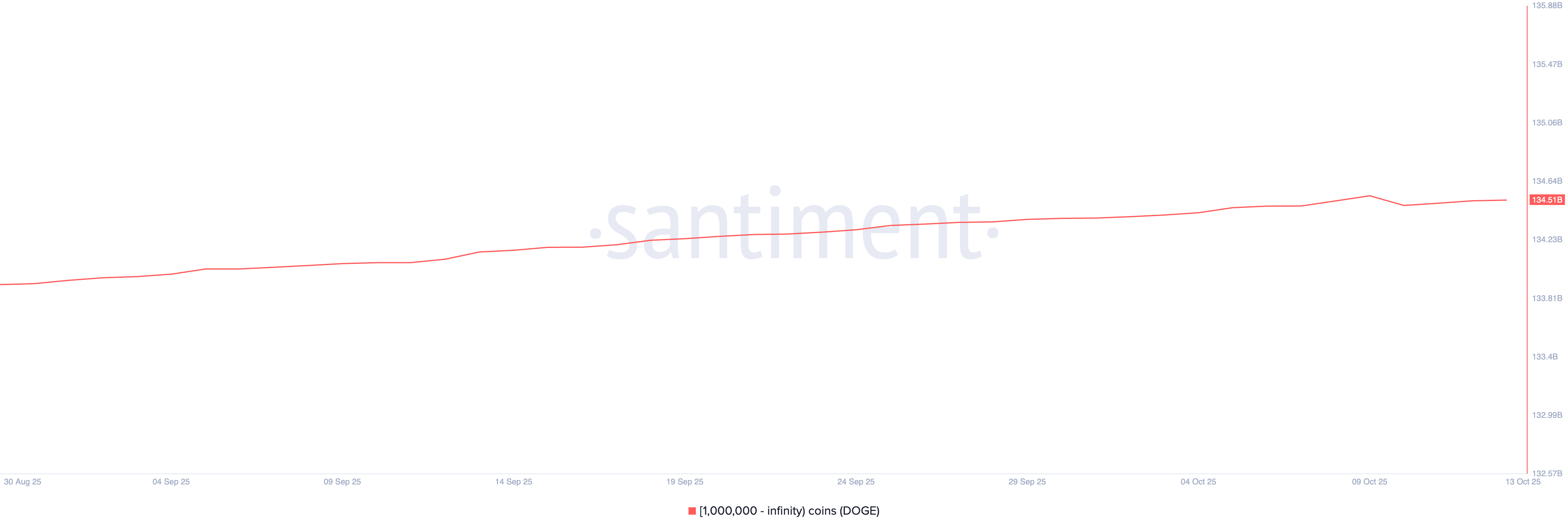 Dogecoin cotiza por encima de 0.20000$ en el momento de la redacción el lunes, manteniendo las ganancias del 11% del domingo. La reversión se alinea con la demanda constante entre los grandes inversores de billetera, que poseen más de 1 millón de DOGE y un total de 134.51 mil millones de DOGE.
