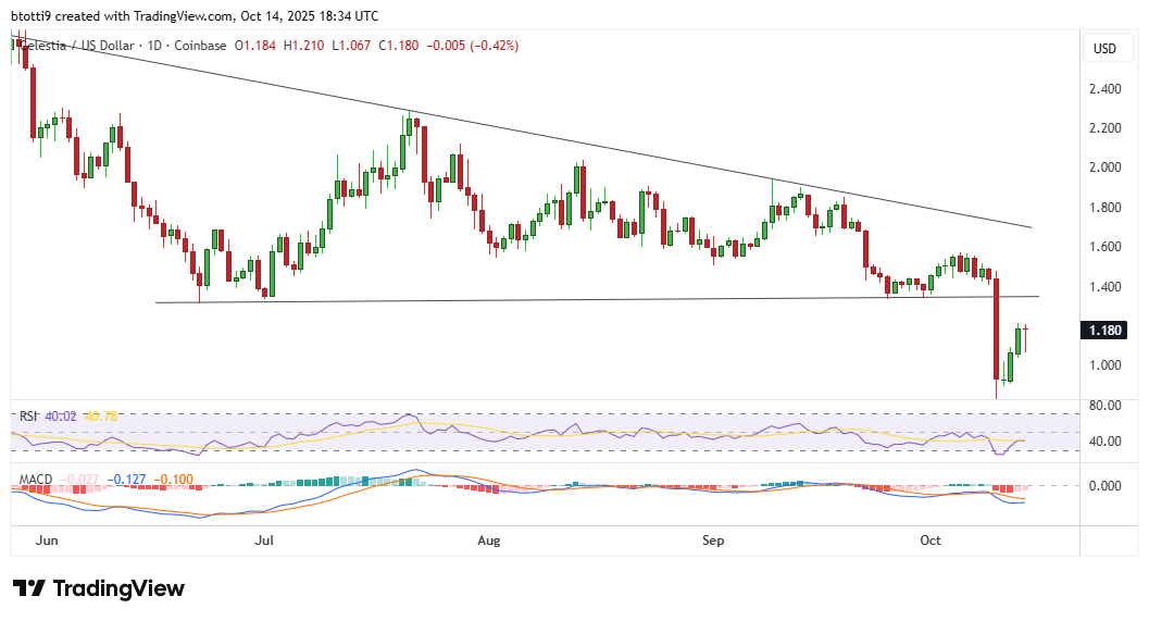 Si bien la caída eliminó miles de millones en valor, los alcistas de Celestia pudieron recuperarse a alrededor de USD 0.93.