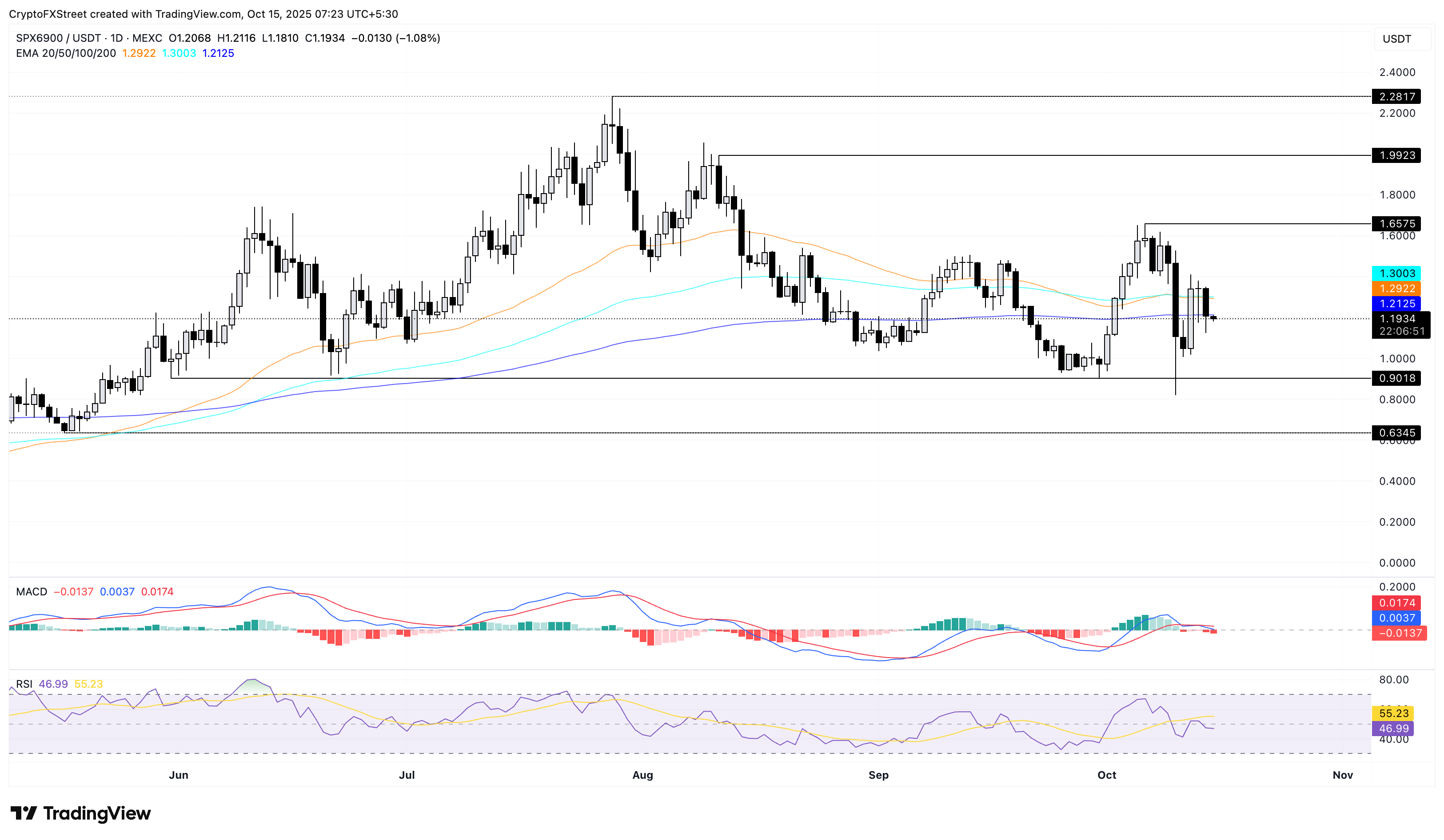 SPX6900 baja un 1% al momento de escribir el miércoles, avanzando la caída del 10% del día anterior. La moneda meme sigue débil tras el colapso del viernes, con riesgos de retroceso intradía que borran las ganancias del 28% del domingo.
