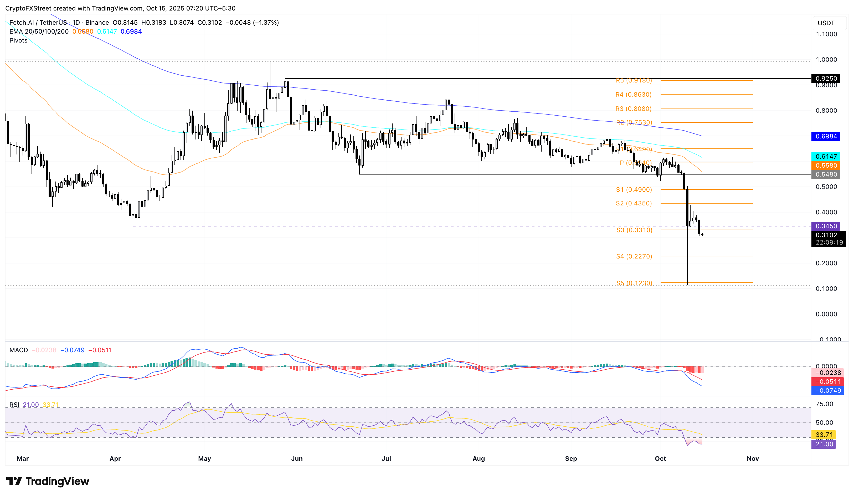 El token de la Alianza de Superinteligencia Artificial marcó su cierre diario más bajo en casi dos años el martes. Al momento de escribir, FET se negocia por encima de 0.3000$ el miércoles después de romper por debajo del nivel del Punto Pivote S3 en 0.3310$ el día anterior.