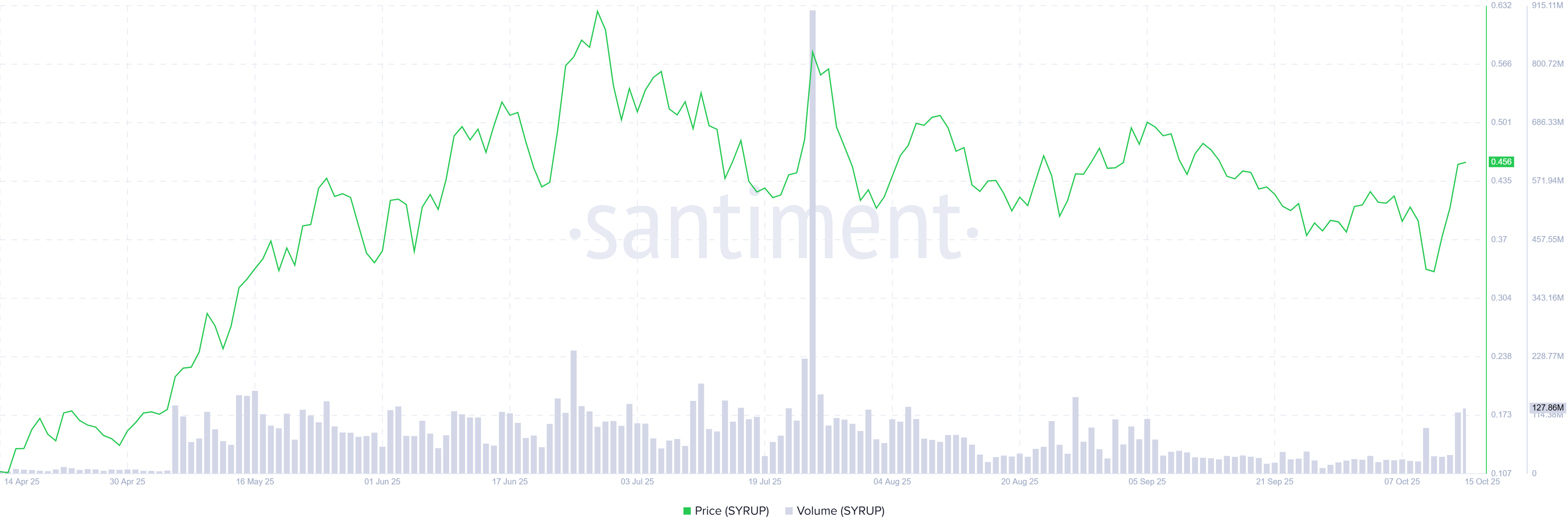 Gráfico del volumen de operaciones de SYRUP. Fuente: Santiment