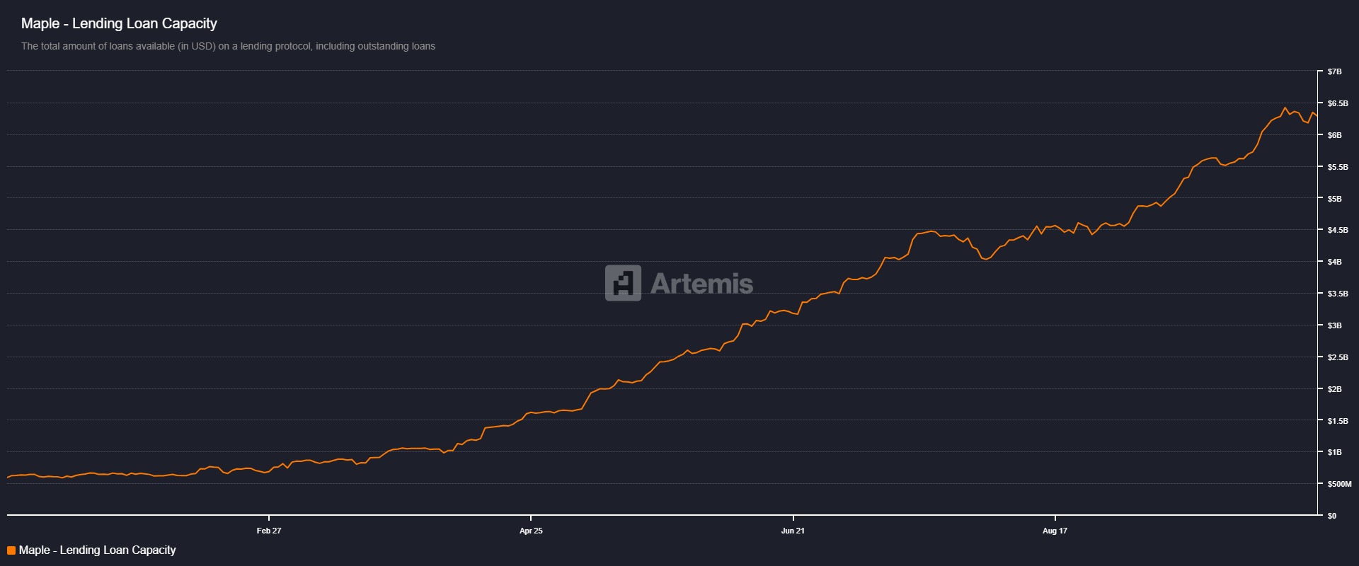 Gráfico de la capacidad de préstamo de Maple Finance. Fuente: Artemis